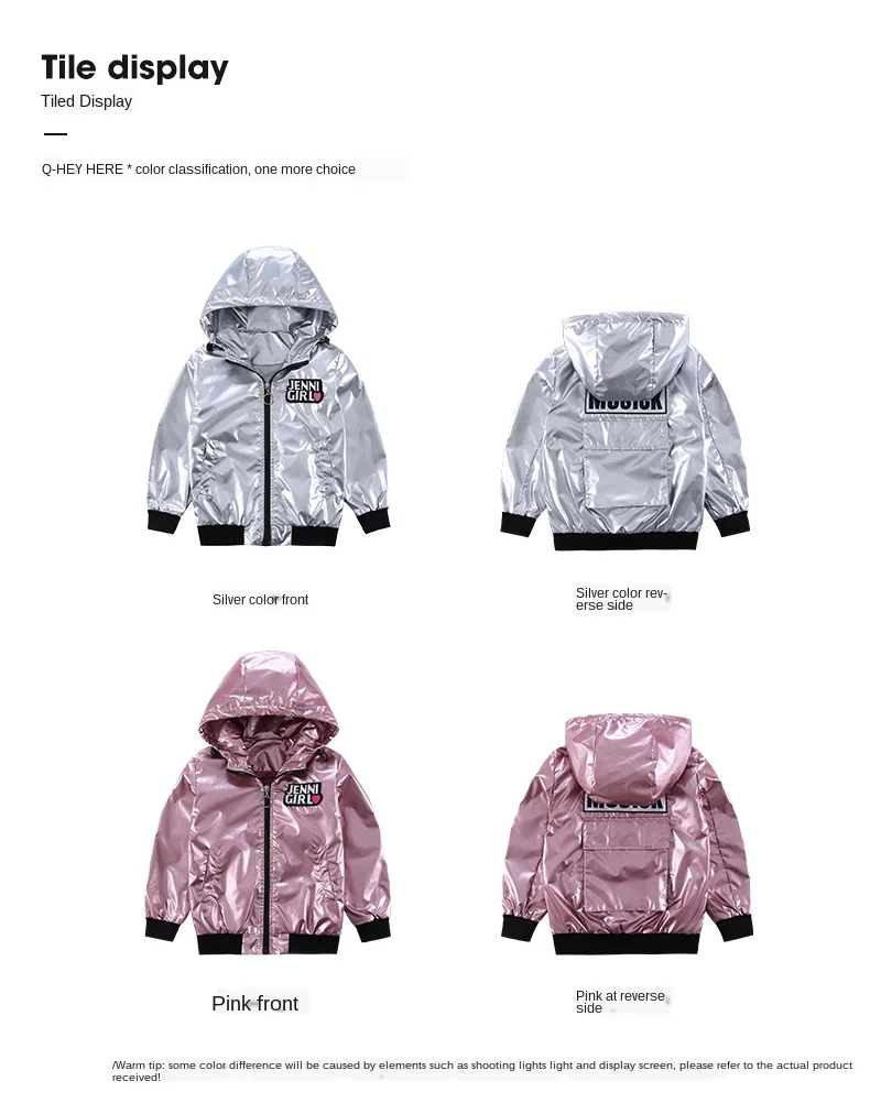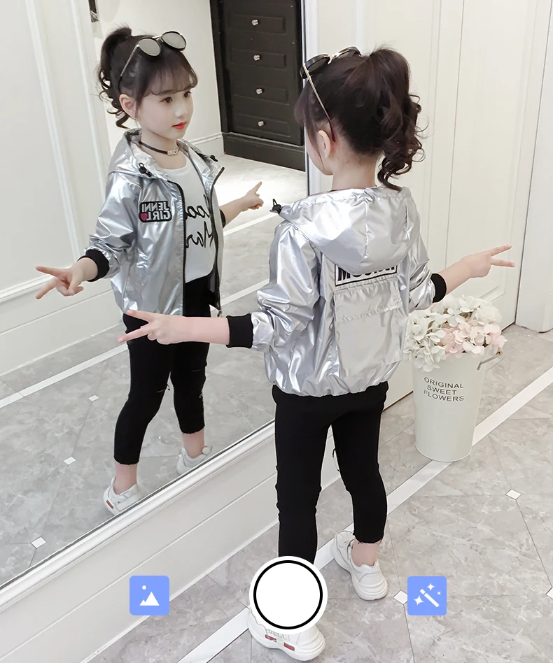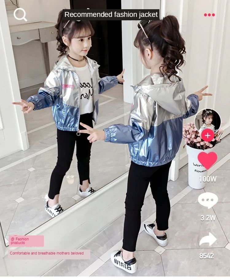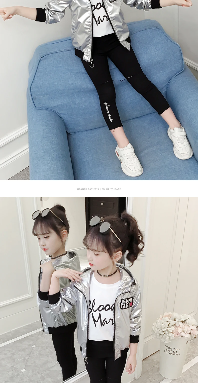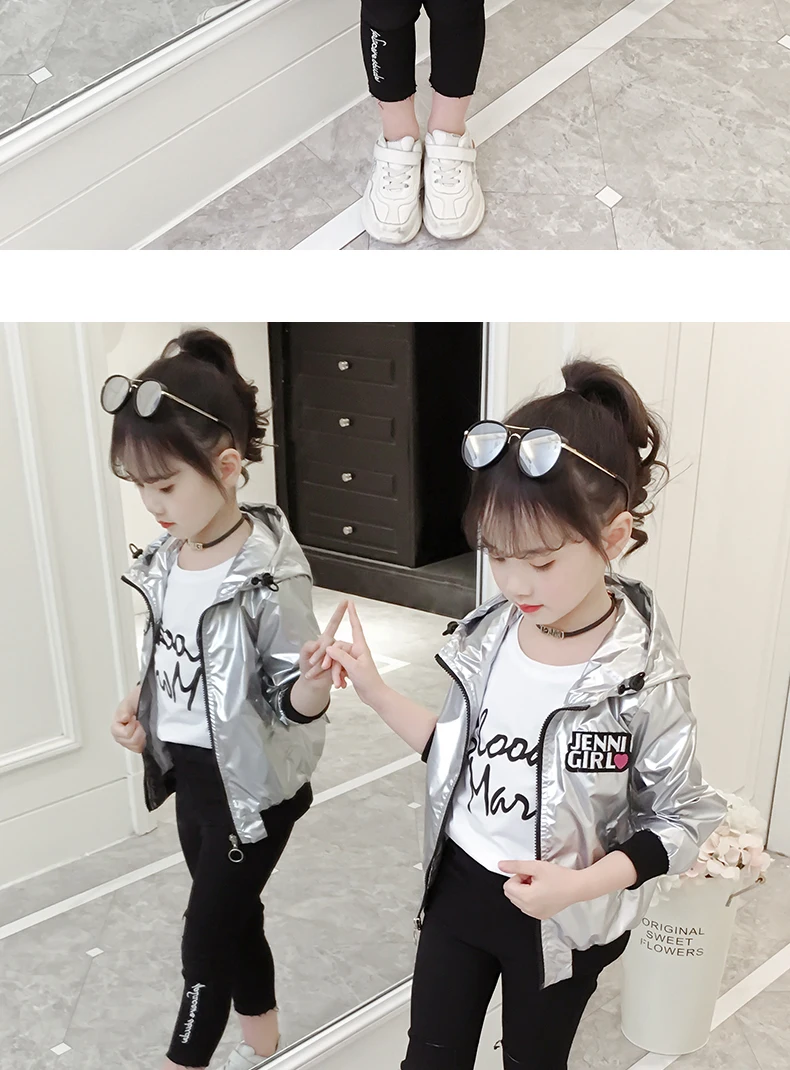 Fashion Shiny Baby Girl's Bomber Jacket New Spring Fall Baseball Jacket Girl Kids Bright Outerwear Tops Outfits Windbreaker Coat