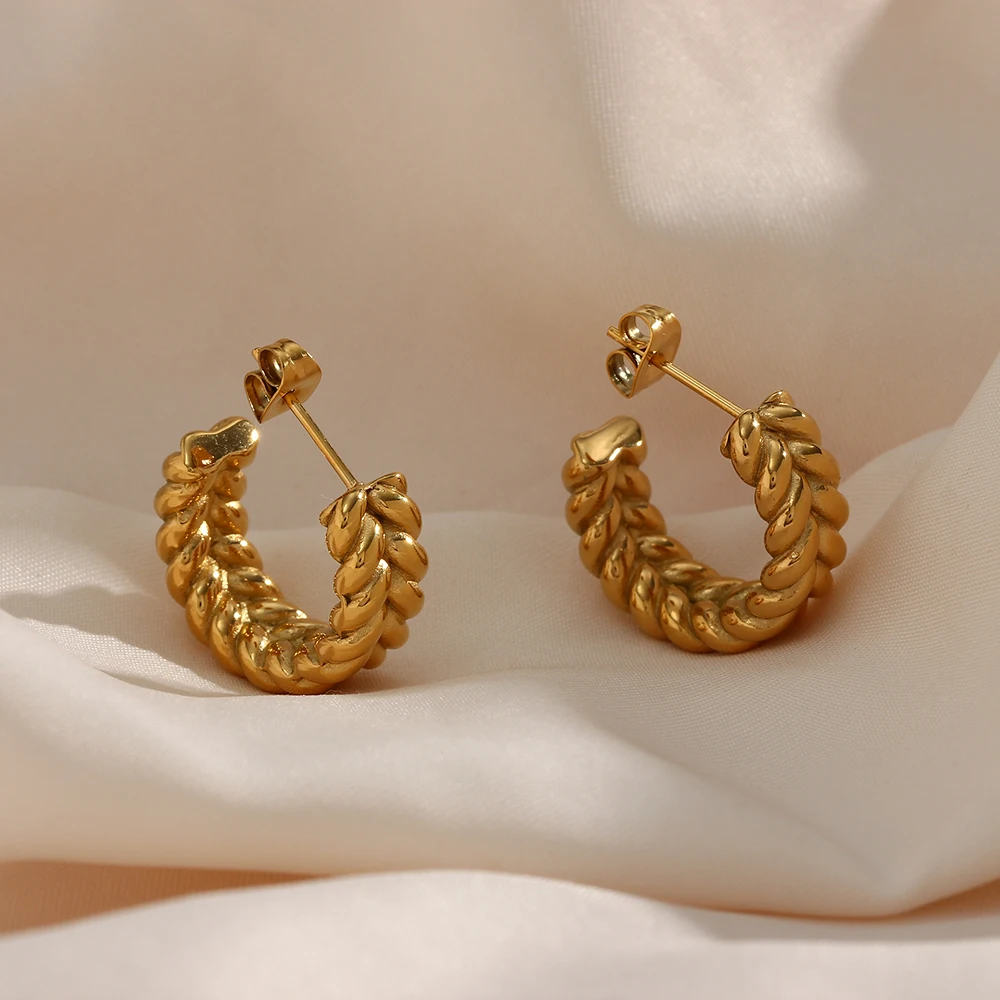 High End Fashion Tarnish Free Funky Earrings18K Gold Plated Stainless Steel Wheat Grain Aesthetic Hoop Earrings For Women