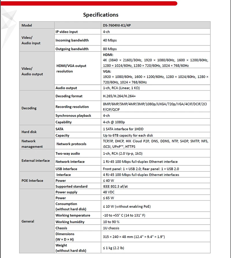 Model Number: DS-7604NI-K1/4P(DS-7604NI-K1/8P)