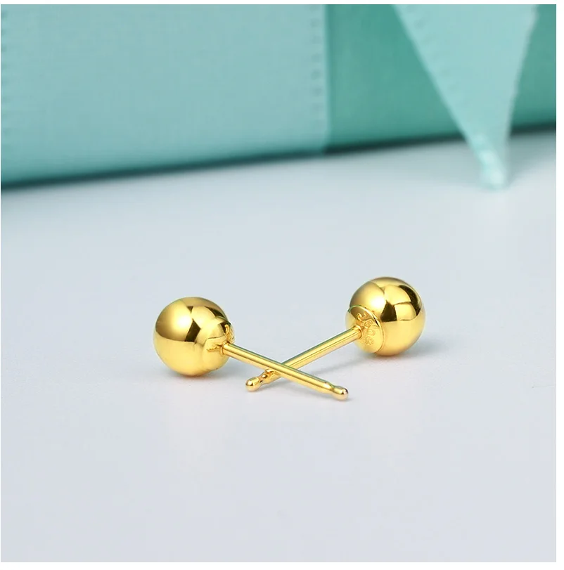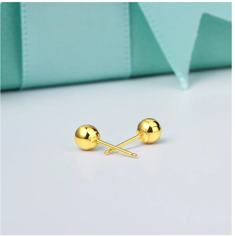 HMSS 24k Pure Gold Smooth Bead Earring Fine Top Upscale Circular Spherical Classic Good Jewelry Ball Women Girl Gift new 2023