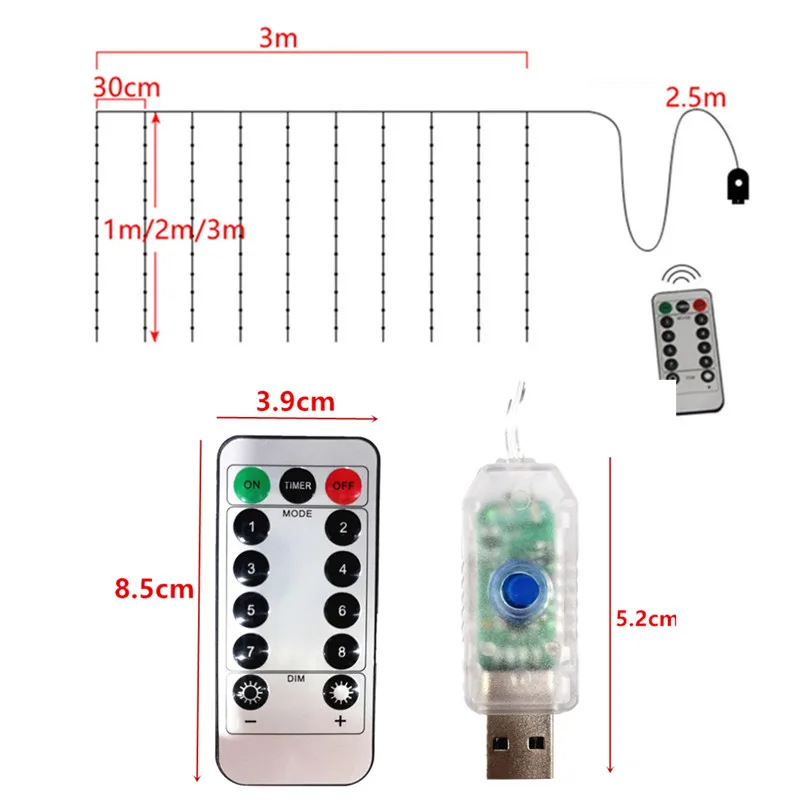 LED Garland Curtain Lights Remote Control 8 Modes USB Fairy Lights String Wedding Christmas Decor for Home Bedroom Ramadan Lamp