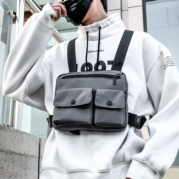Männer Taktische Weste Gürteltasche Hip-Hop Chest Rig Tasche für Männer Männliche Bauchtaschen Leinwand Gürteltasche Brusttasche Streetwear Kanye
