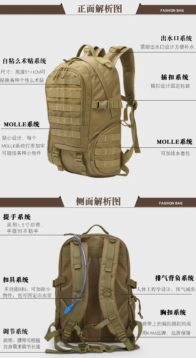 35L Military Tactics Equipment Tactical Molle Package Outdoor Sport Waterbag Climbing Hiking Trekking Backpack Cycling Hunting Bags