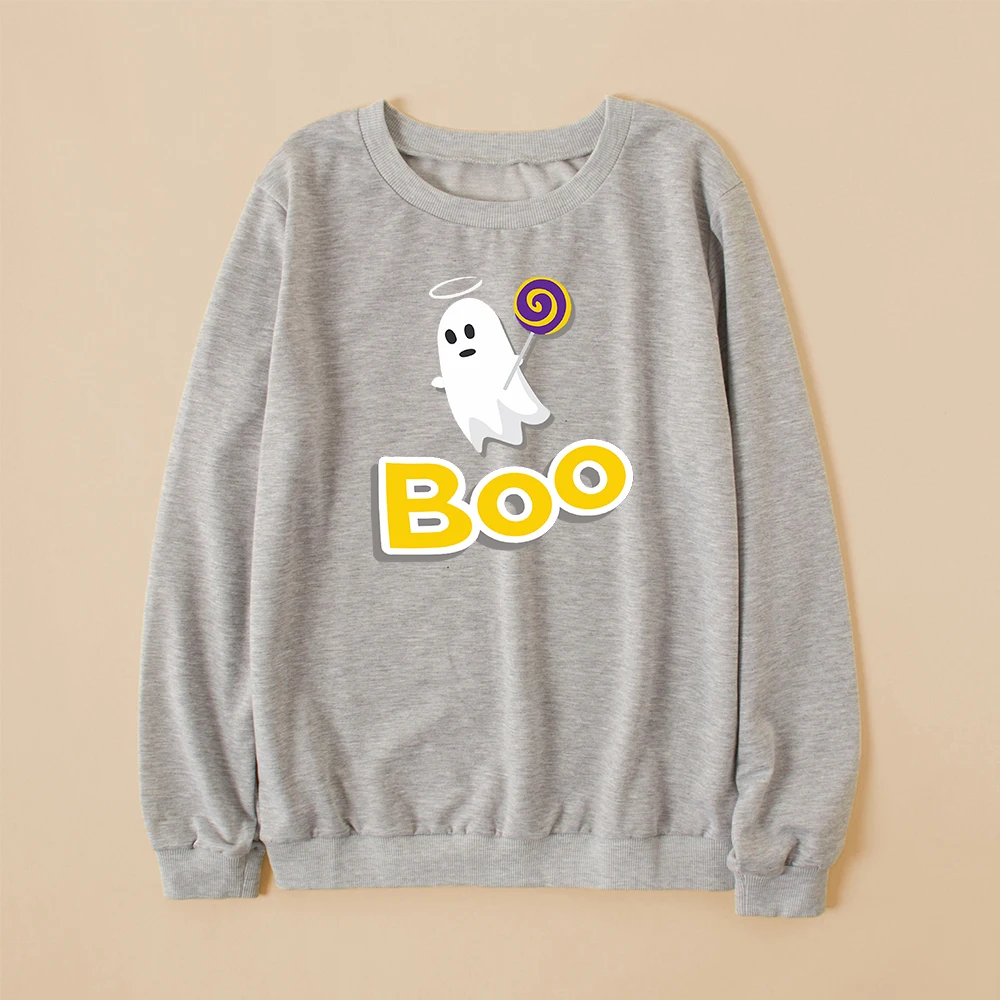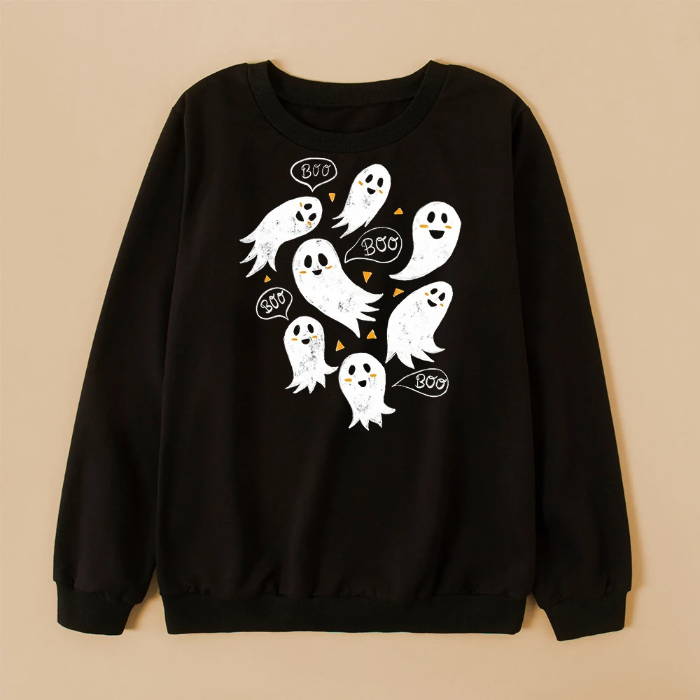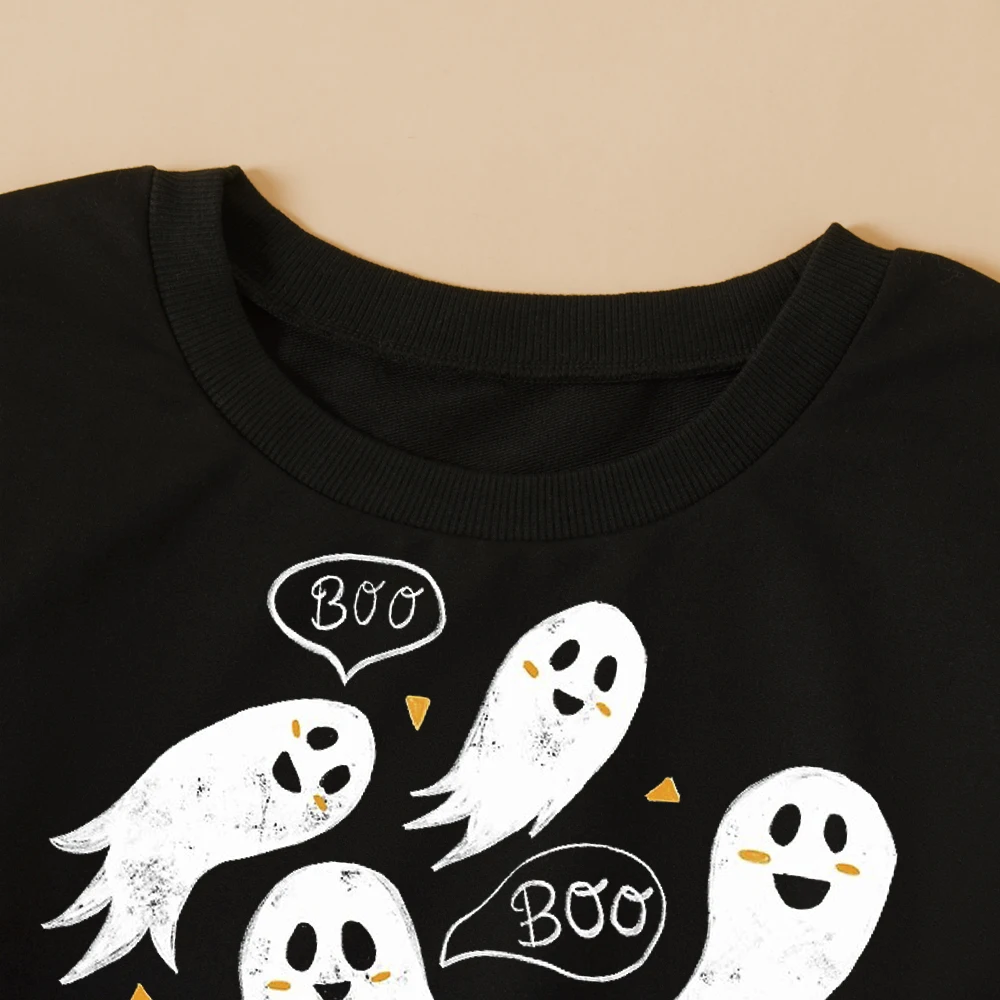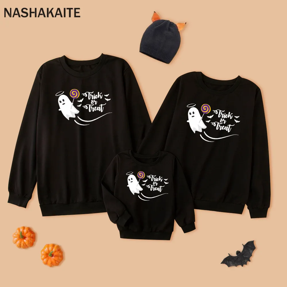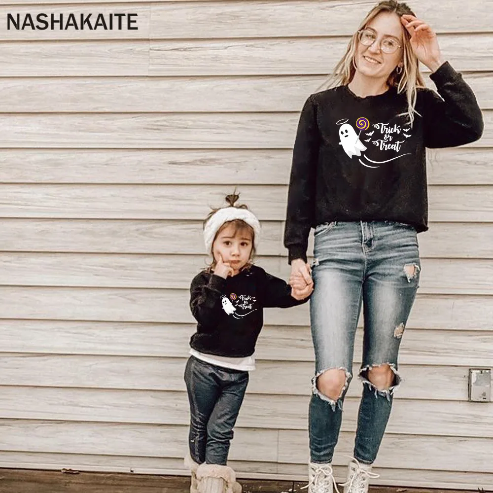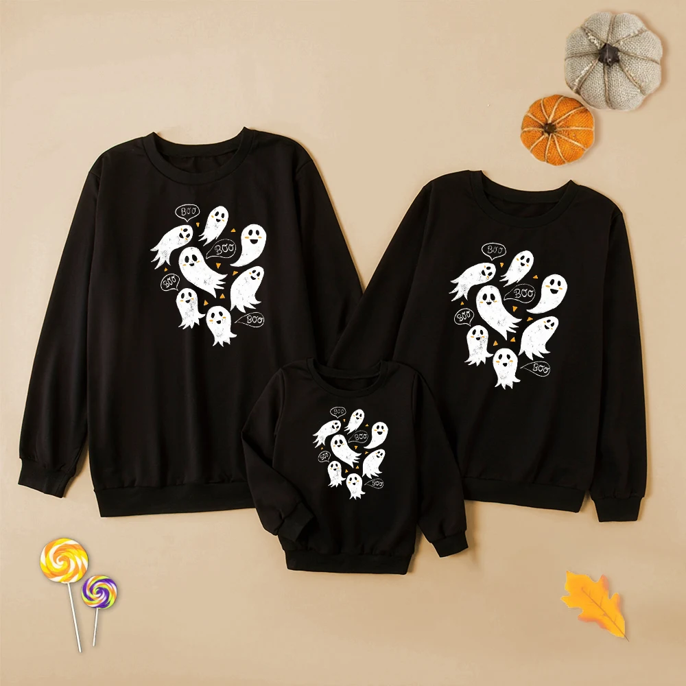 NASHAKAITE Mom And Daughter Equal Halloween Cartoon Ghost Printed Family Sweater Mommy And Me Clothes Family Matching Clothes