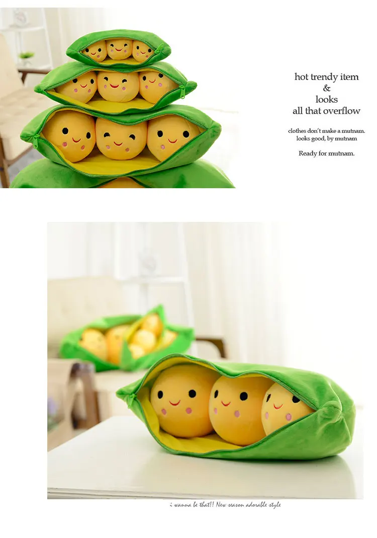 Pea Pod Plush Toy Cute Cartoon Pea Plush, 25/40/55cm Peasecod Stuffed Dolls Toys for Children Christmas Birthday Gift