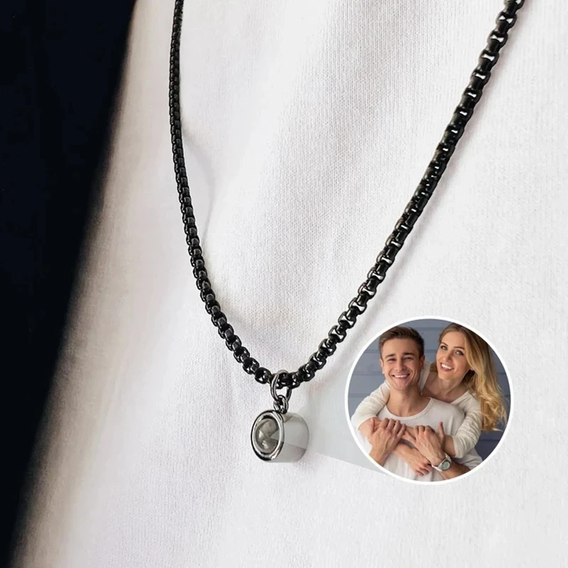 Projection Photo Necklace For Men Personalized Memorial Jewelry For Dad Boyfriend Custom Anniversary Father Family Christmas Gif