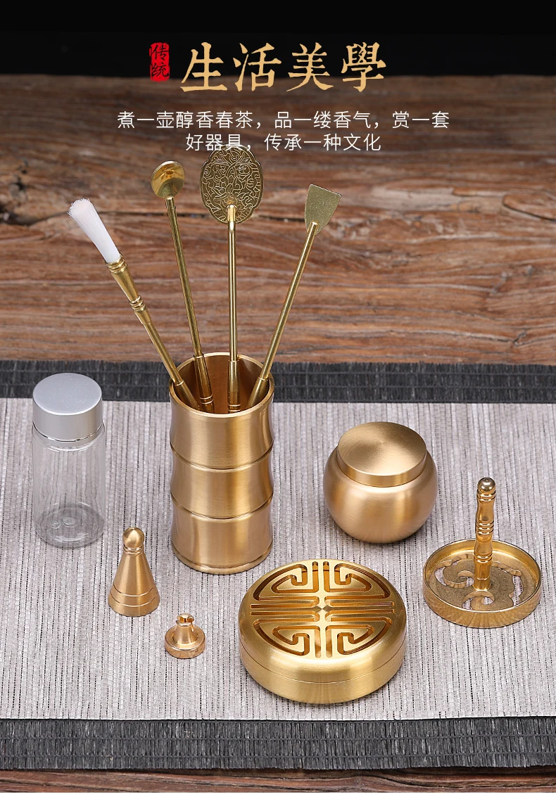 Pure Copper Incense Burner Set Incense Seal Tools Home Decoration Incense Holder Aroma Furnace Aromatherapy Yoga Office Relax
