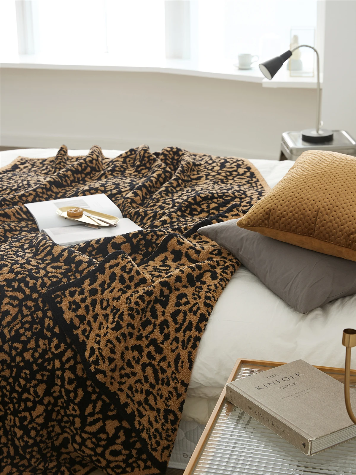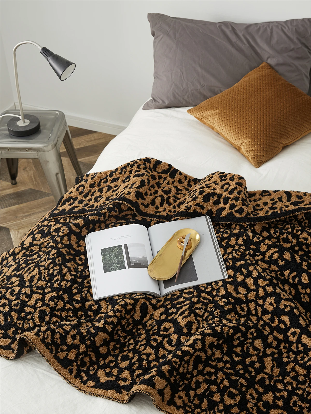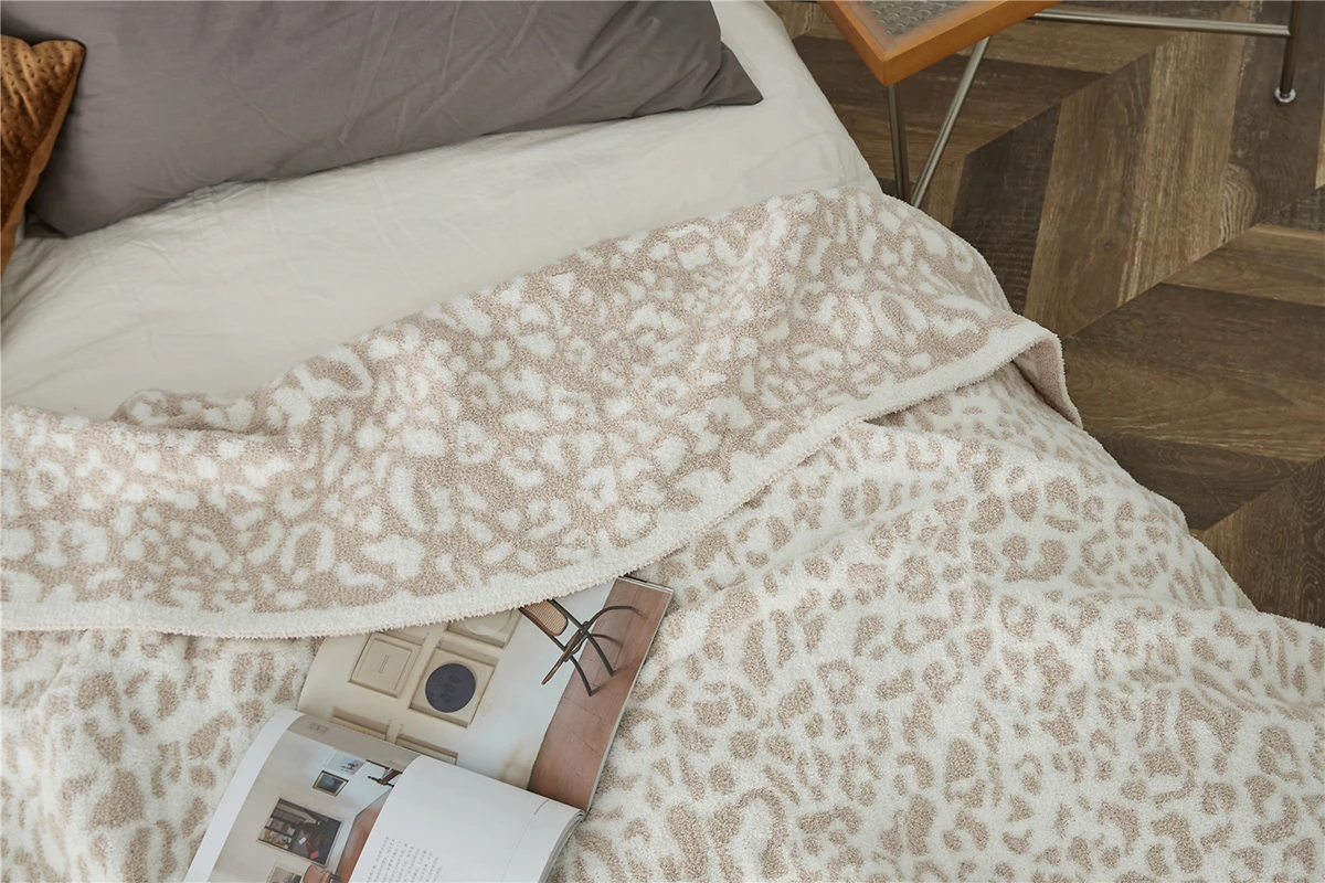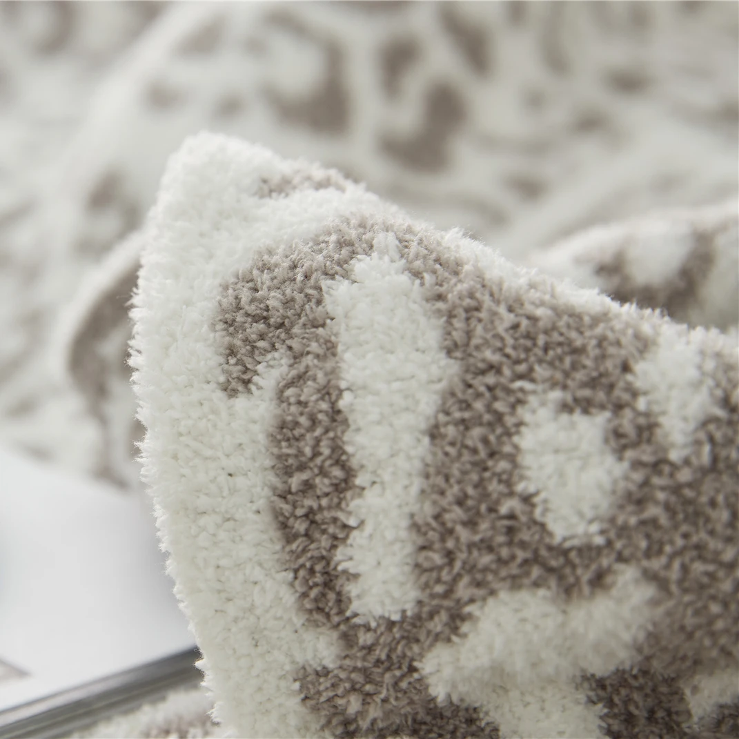 Regina winterwarme gemütliche Luxus-Mikrofaser-Strickdecke aus flauschigem Kunstpelz mit Leopardenmuster