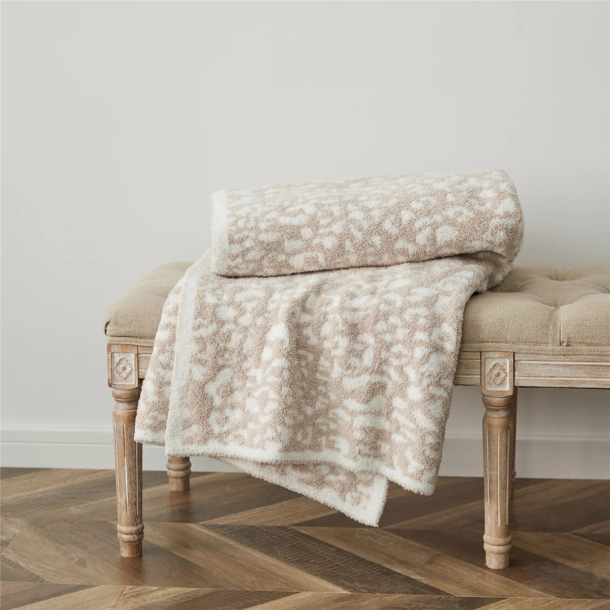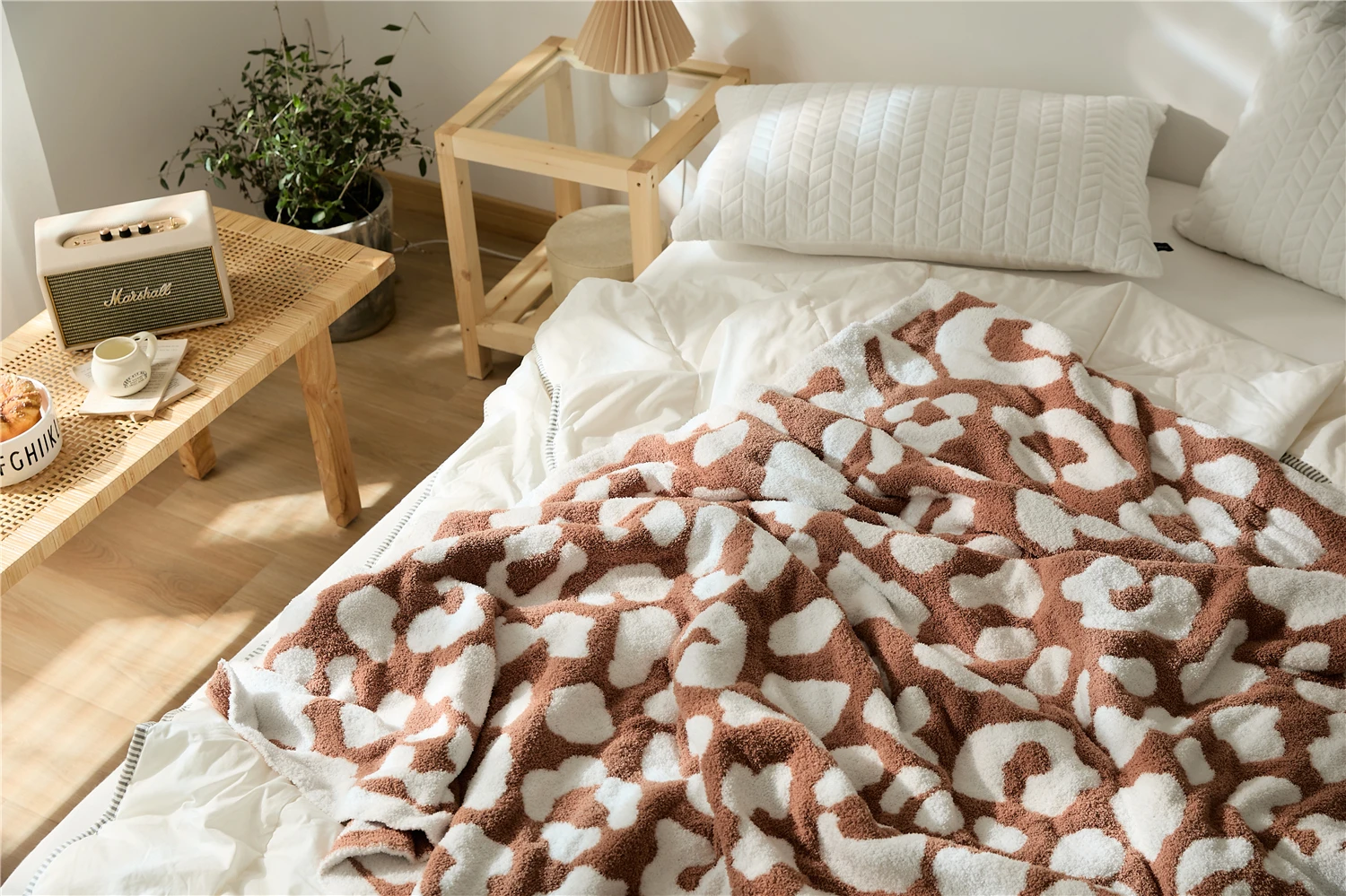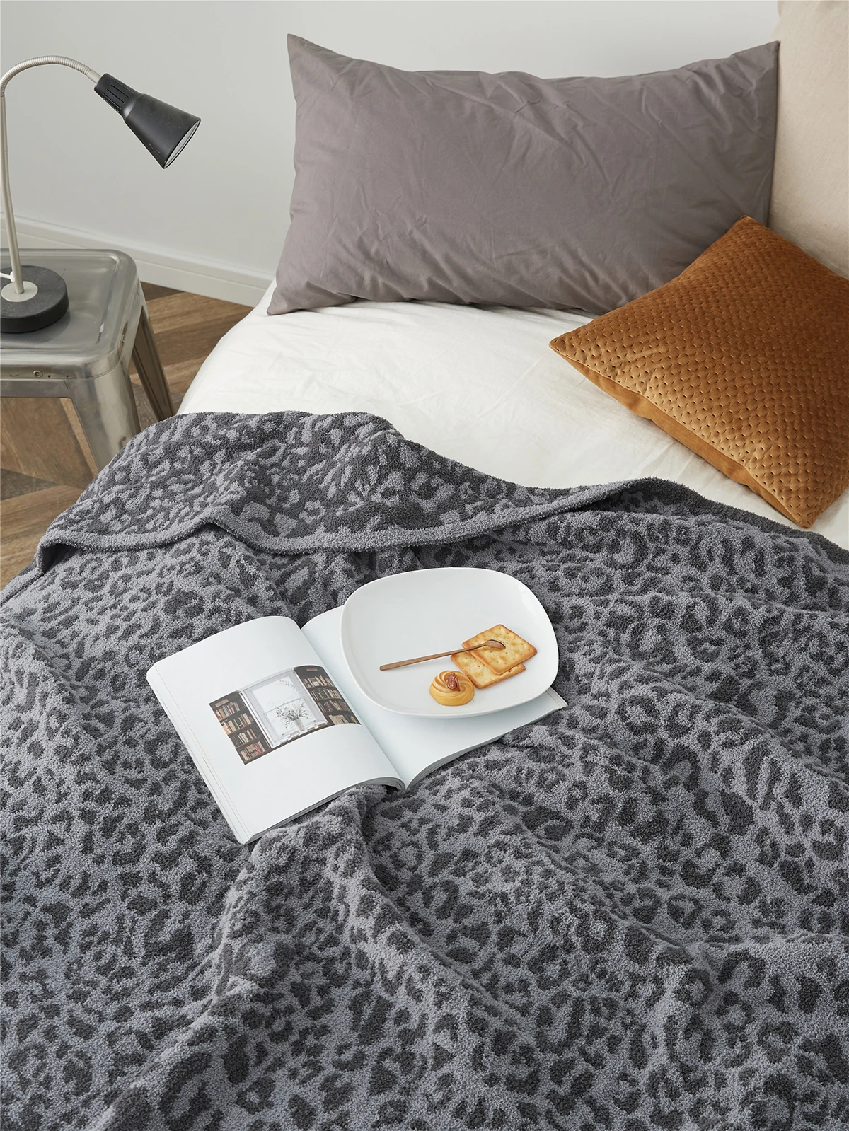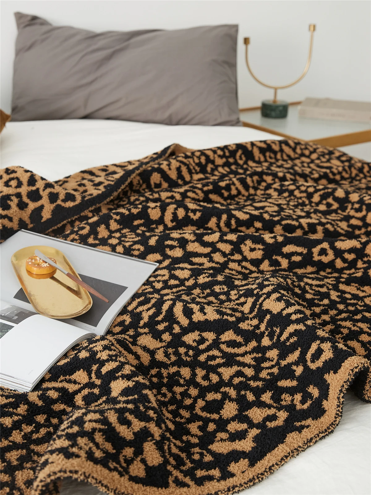Regina winterwarme gemütliche Luxus-Mikrofaser-Strickdecke aus flauschigem Kunstpelz mit Leopardenmuster