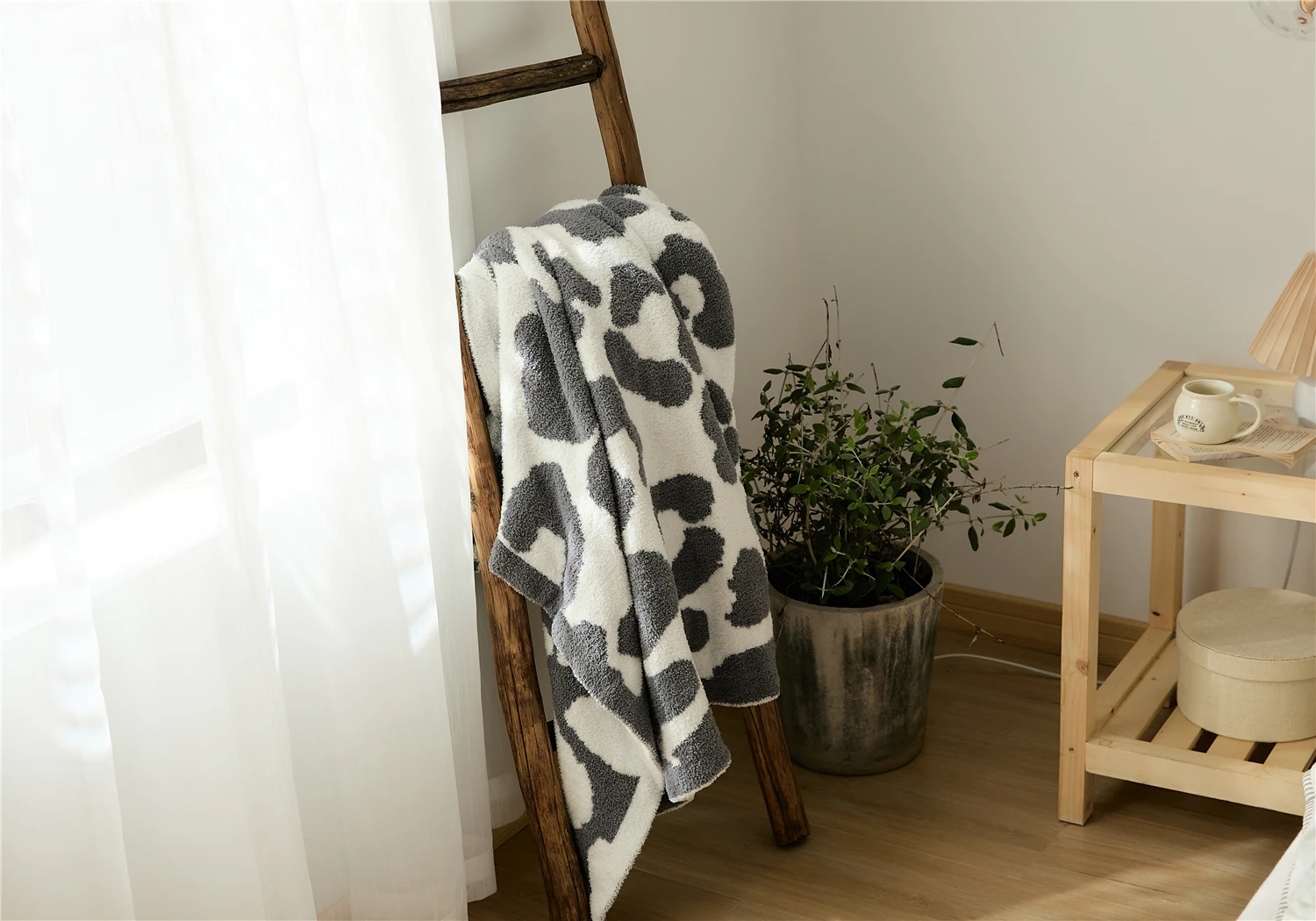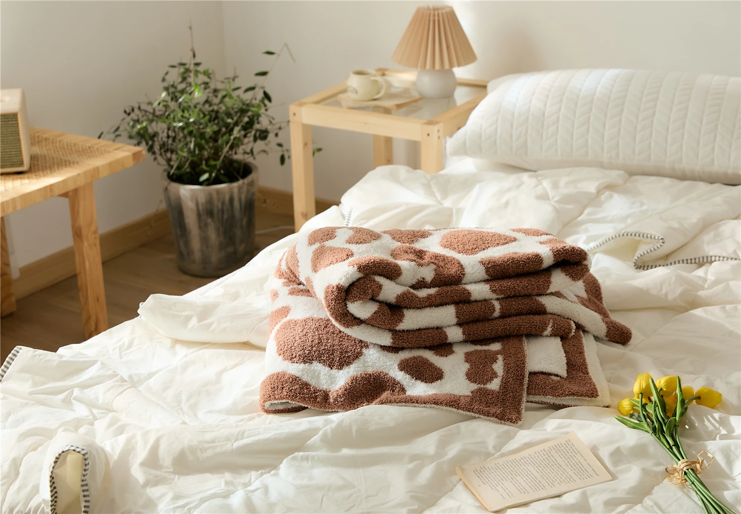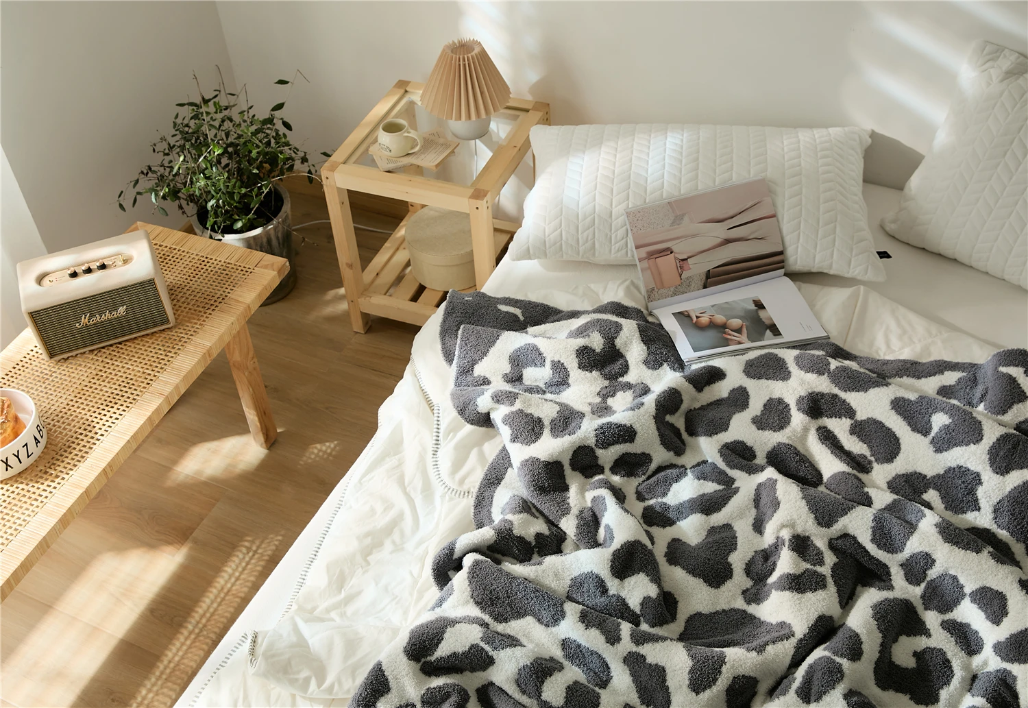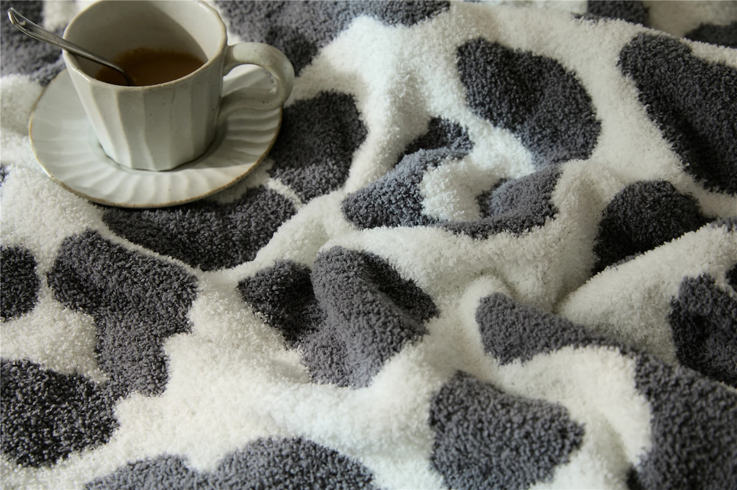 Regina winterwarme gemütliche Luxus-Mikrofaser-Strickdecke aus flauschigem Kunstpelz mit Leopardenmuster