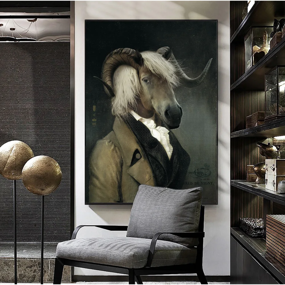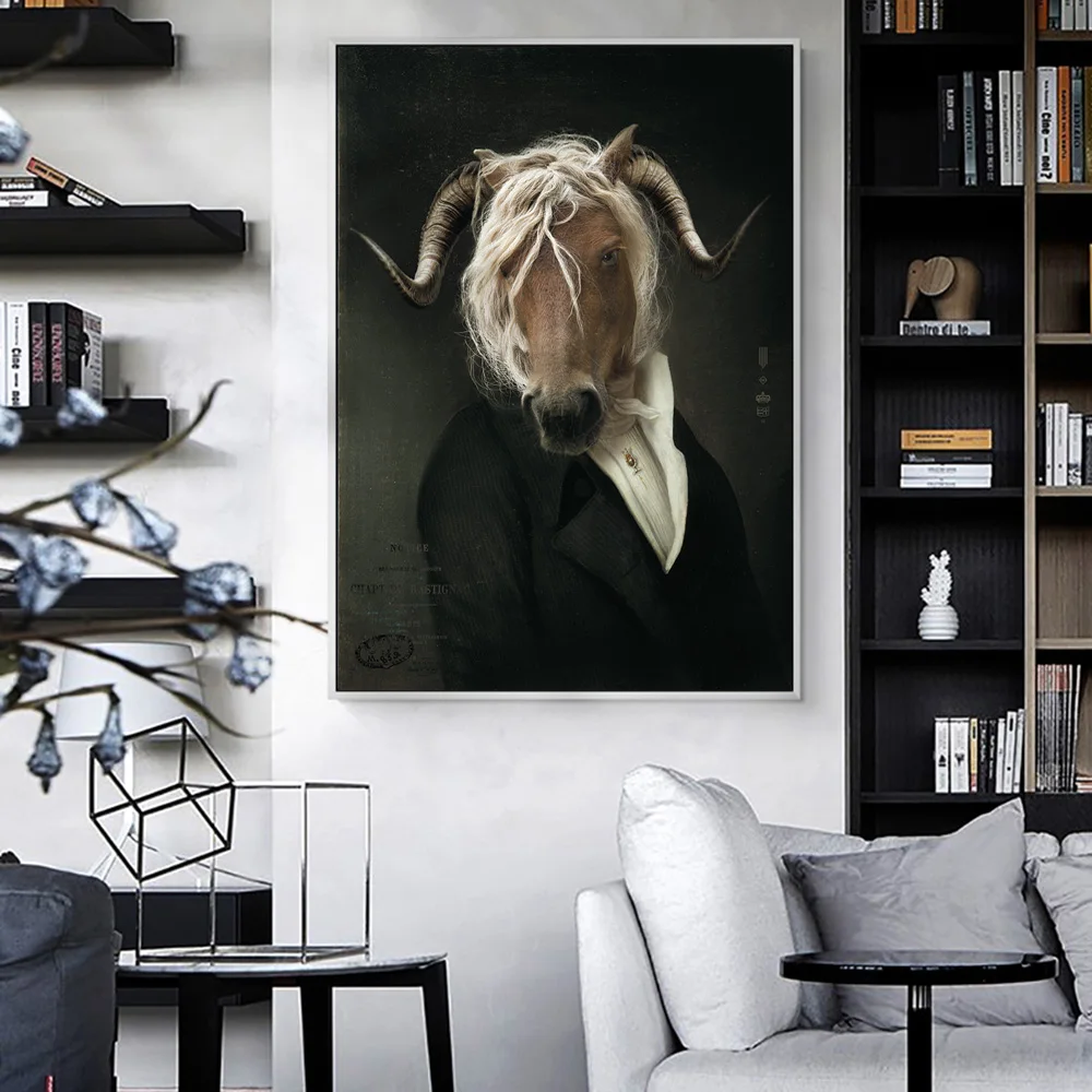 Retro Goat Canvas Art Posters And Prints Earl of the Animals Classical Paintings On The Wall Art Picture Home Decoration Cuadro