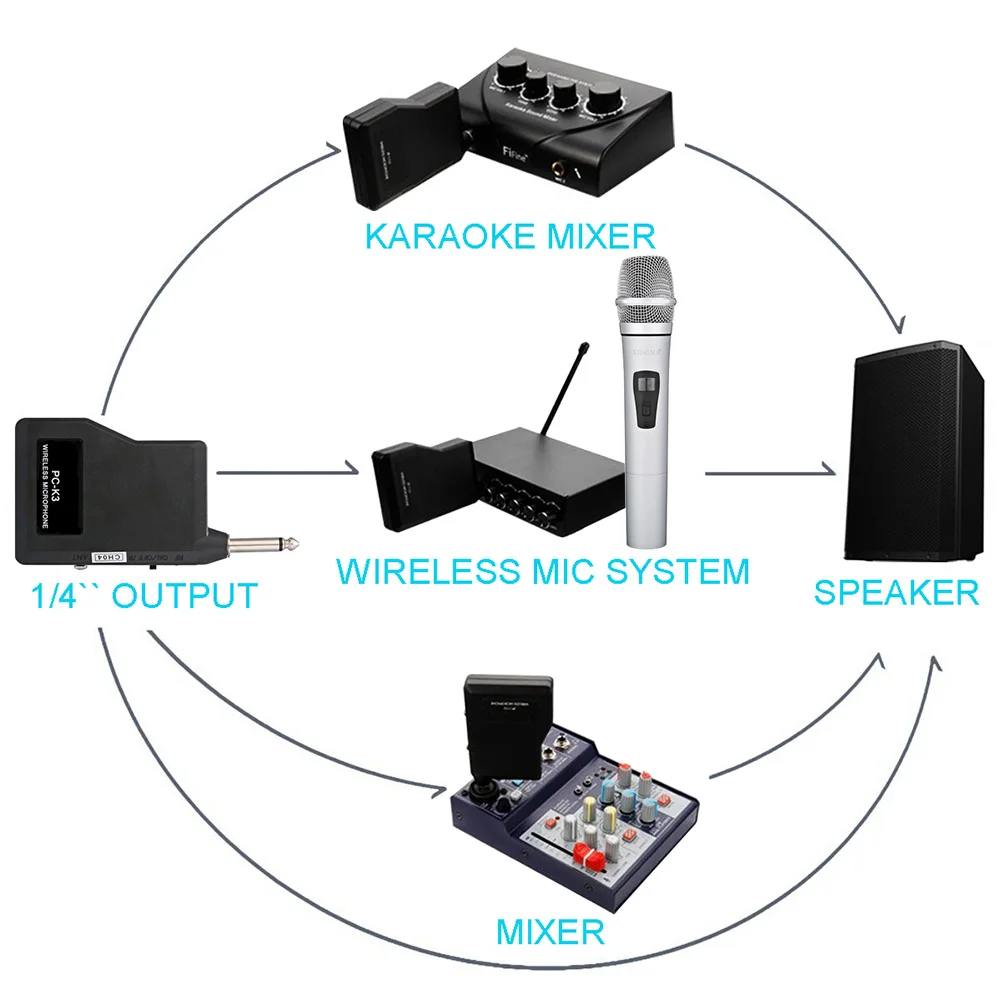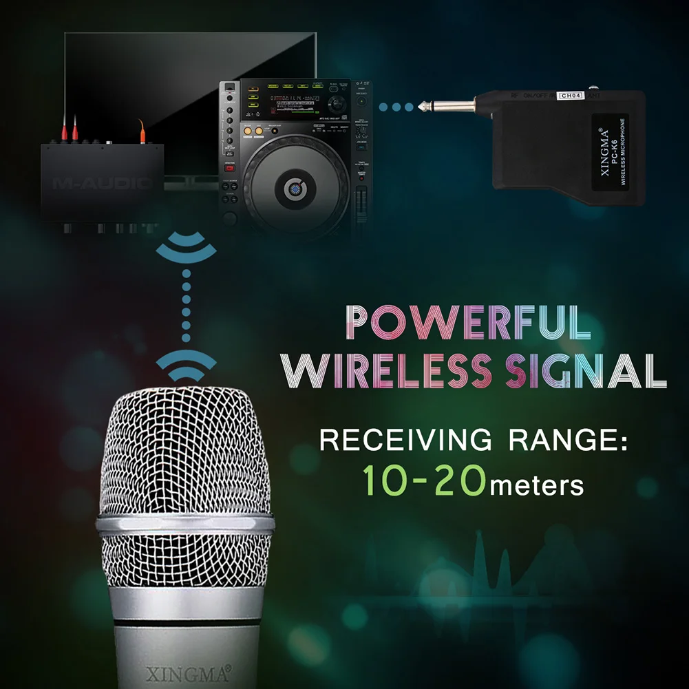 6. Special multi-channel designing, can be used with 1-6 sets or more at the same time even no mixer. Strong antijamming; Very convenient to be used.