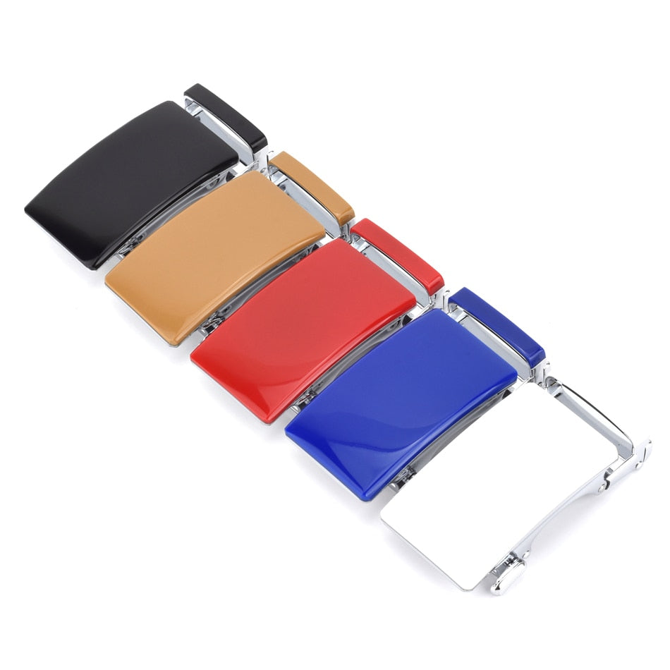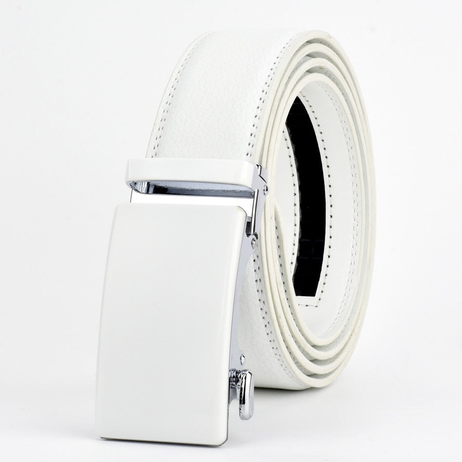 WOWTIGER Black White Red Blue 3.5cm Cowhide Genuine Leather Belt For Men High Quality Male Brand Ratchet Automatic Luxury Belts
