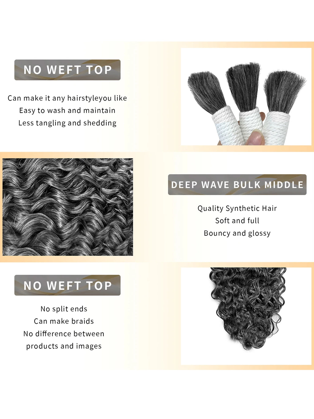 150g Boho Grey Deep Wave Bulk Human Hair for Braiding 3 Bundles No Weft Salt Pepper Gray Curly Human Hair Extensions for Braids