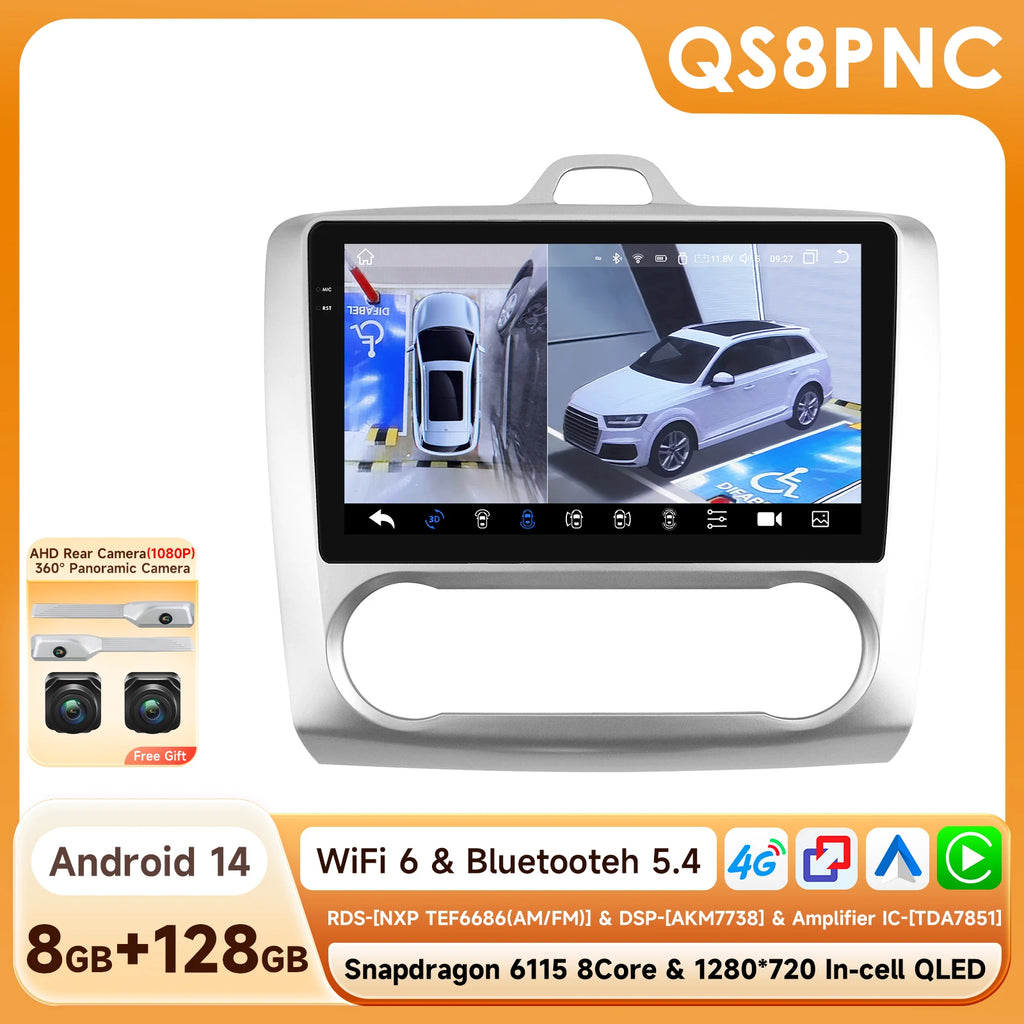 Basic functions: Android 14 + 9 inch Display Screen +8Core Snapdragon 6115 2.0GHZ(4 Core 1.2GHZ )+ DDR3 1GB Flash (2GB/3GB/4GB/6GB/8GB optional) + 16 GB Memory (32GB/64GB/128GB optional) + WIFI (4G Network optional)+ Mirror link+ Steering Wheel Control + RDS+DSP(optional)