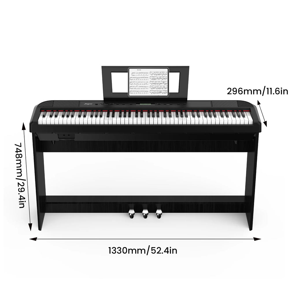 đŸŽč【PORTABLE & EASY TO CARRY】The electronic piano dimensions is 52.4" (L) x 11.6" (W) x 29.4" (H), net weight: 46.5 lbs. Convenient to carry, you can play anytime, anywhere. Such as birthday parties, concerts, family gatherings, etc. Make the atmosphere happier through beautiful piano music.