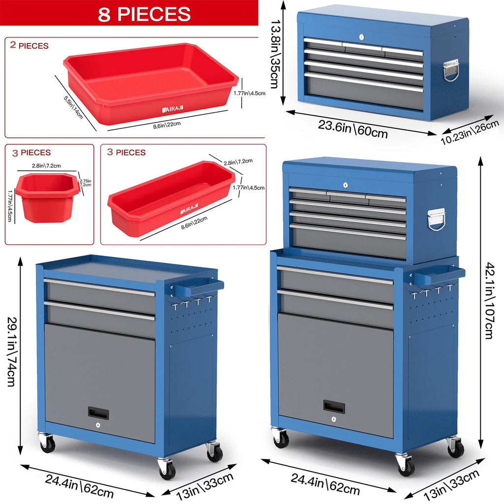 AIRAJ Large 8 Drawers Tool Chest,Rolling Tool Chest with Wheels,Heavy Duty Tool Storage Cabinet,with Tool Box Organizer