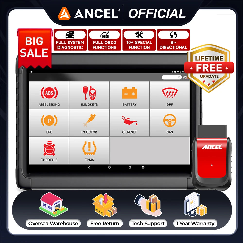 Ancel X6 10.1-inch tablet obd2 scanner is capable of reading and clearing trouble codes of all major systems , including Engine, Airbag/SRS, Transmission, ABS, SAS, Air Conditioning, ACC, Audio, Headlight ,Center Lock, ESP,Suspension failures, ect.
