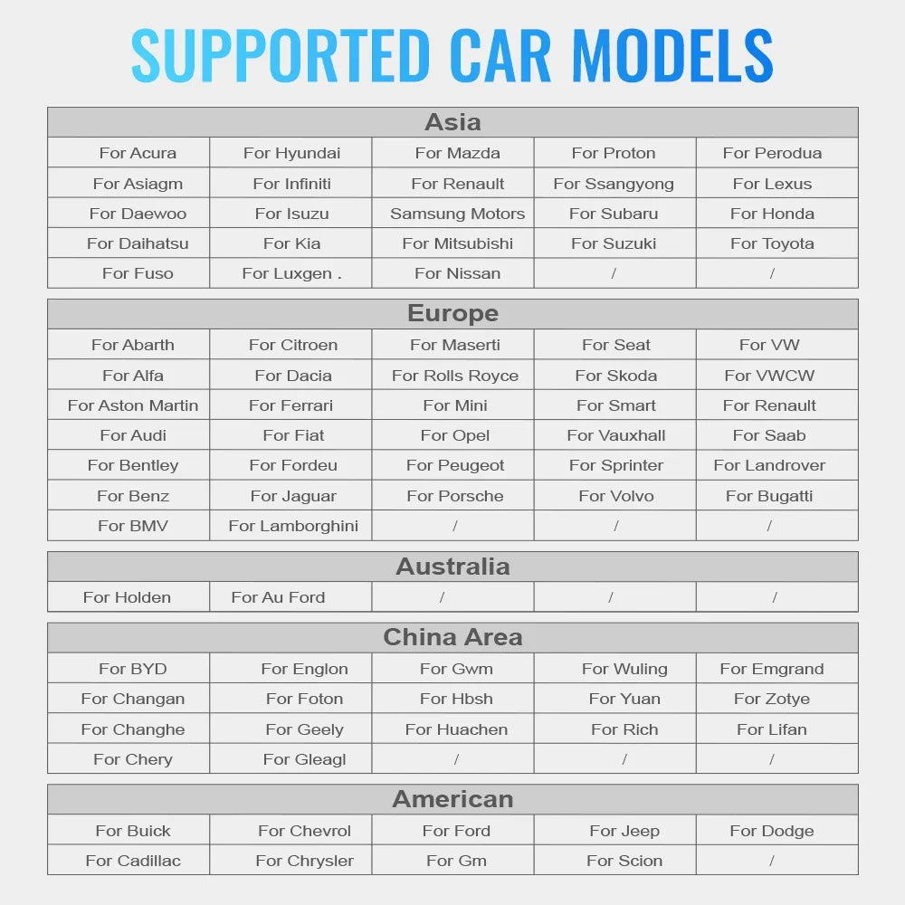 Ancel X6 Compatible Vehicles: Support More than 5000+ Car models