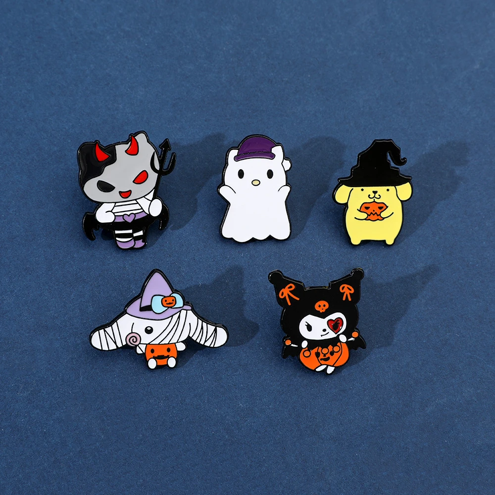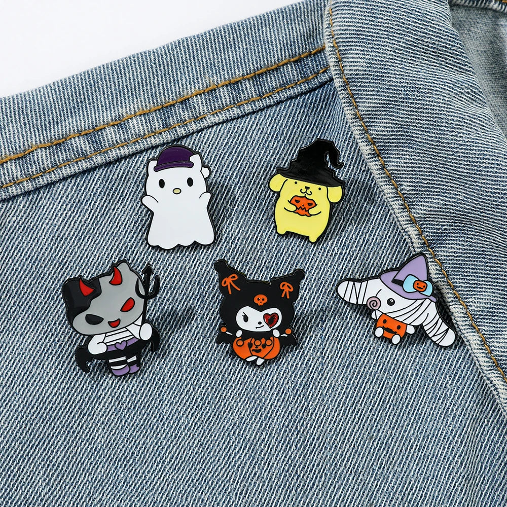 Anime Cute Enamel Pins Kitty Cat Kuromi Cinnamoroll Pom Pom Purin Brooch for Halloween Clothing Accessories Gifts