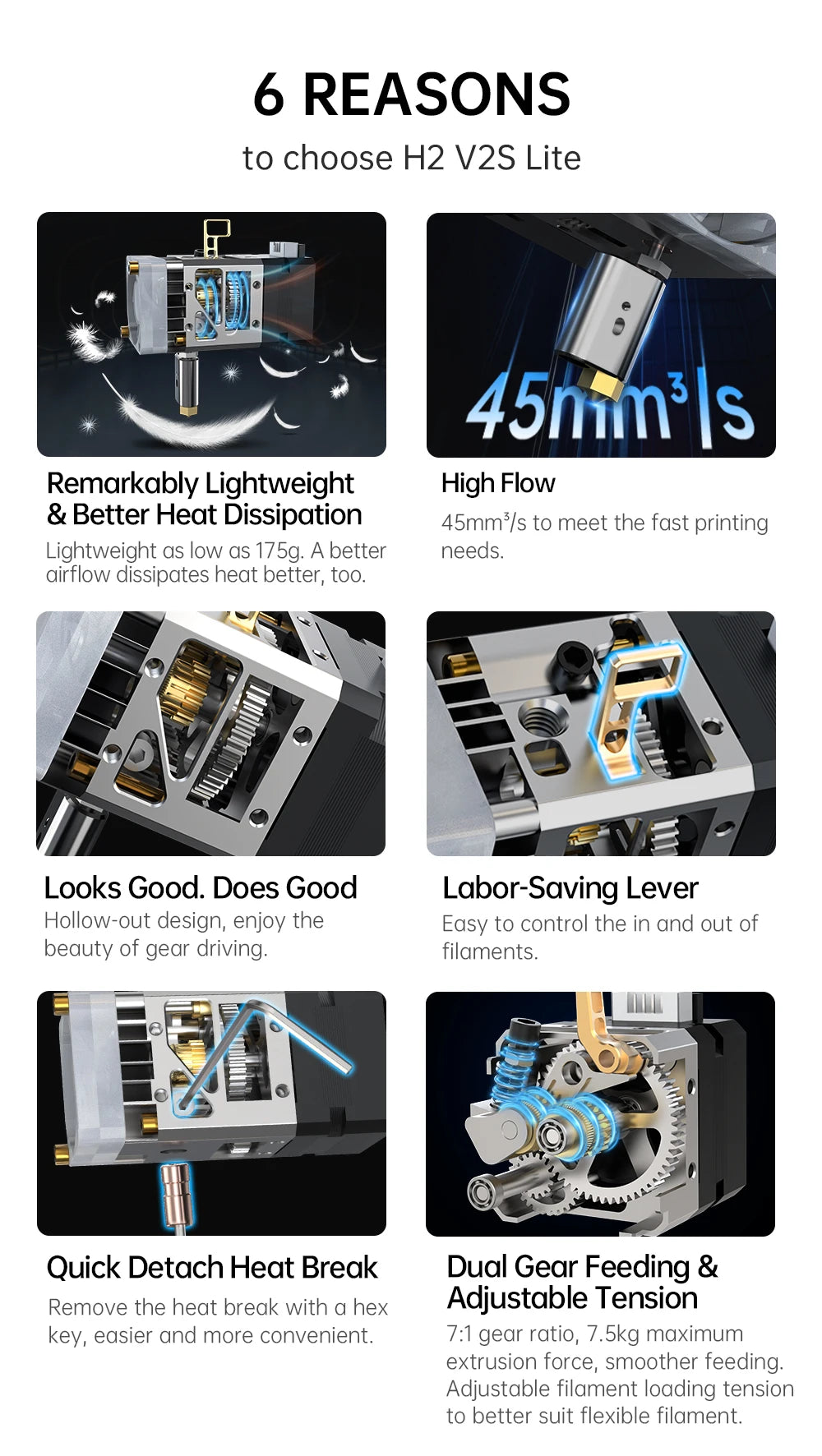 H2 V2S Lite can output 45mm3/s to meet the fasterprinting needs.