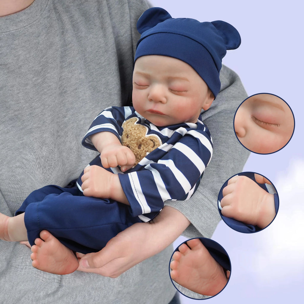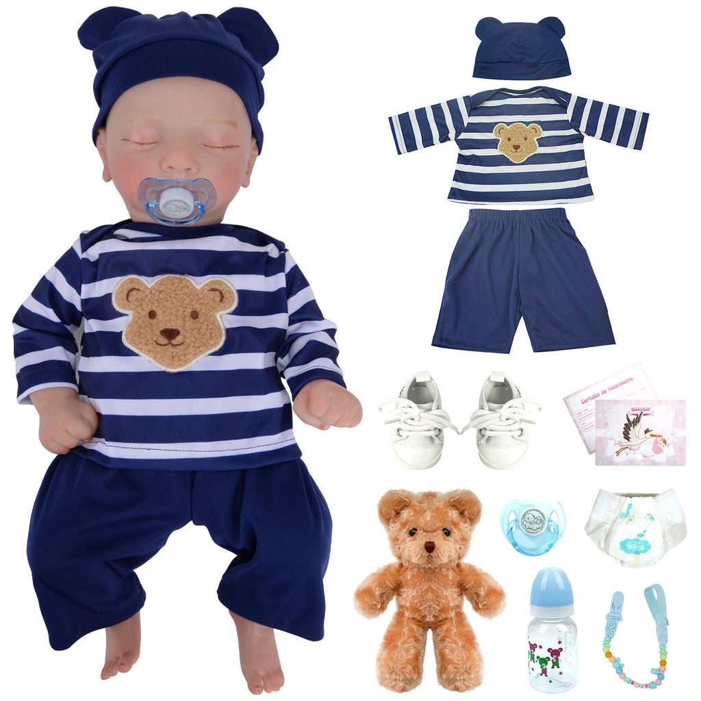 BRASTOY Reborn Painted Realistic Baby Doll 48cm Boy Teddy Bear Silicone Body Can Take Bath