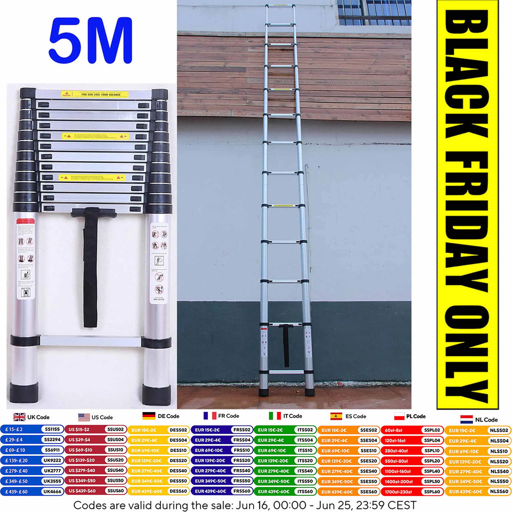 5M Aluminium Telescopic Extension Ladder