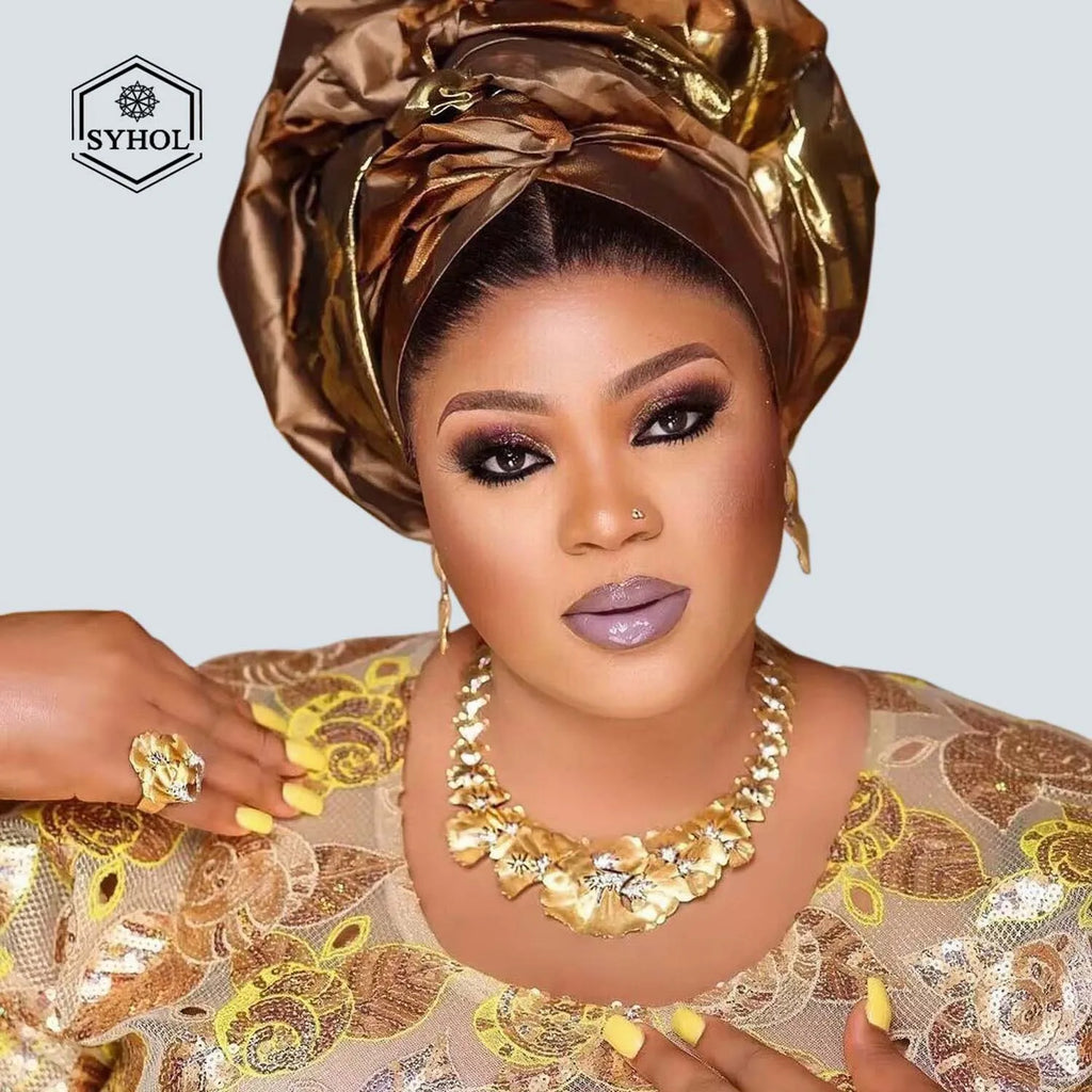 Gold Plated Woman Jewelry Set Luxurious Flower Necklace Earrings Elegant Woman Dinner and Wedding Bijoux SYHOL