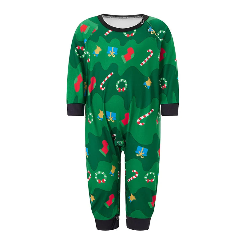 Matching Family Christmas Pajamas Set Baby Romper Dog Outfit Christmas Tree Print Tops and Pants Sleepwear Ensemble