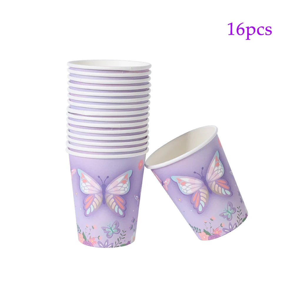 Pink Purple Butterfly Disposable Tableware Paper Plate Cup Napkin Banner Butterfly Birthday Party Decor Girl Baby Shower Wedding Supplies