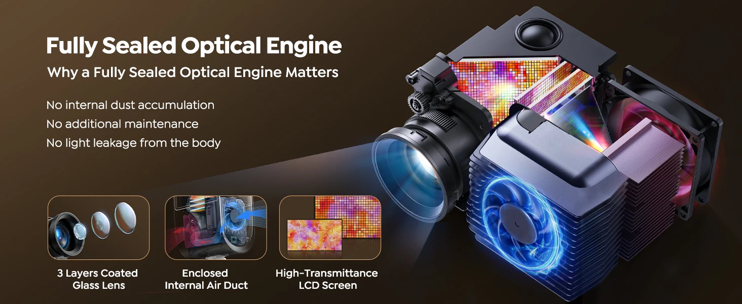 【30000 Lumens Full HD 1080P WiFi Bluetooth Projector Supports 4K 60Hz, Fully Sealed Optical Machine】This projector has 1920*1080p native resolution, 40000:1 contrast ratio, advanced color restoration technology, bringing you a clear and delicate visual feast. 60Hz refresh rate allows you to enjoy online game videos without lag. Fully sealed optical design can effectively block dust, reduce black spots.Fully sealed optical design can effectively block dust, reduce black spots.The phone projector features a TRUE enclosed optical engine, eliminating light leakage, dust accumulation, image black spots, and excess noise—common issues in non-enclosed projectors. This practical design ensures durability and a hassle-free experience for years to come.(Note: Videos labeled as 4K will display at a native resolution of 1080P, often termed '4K supported')