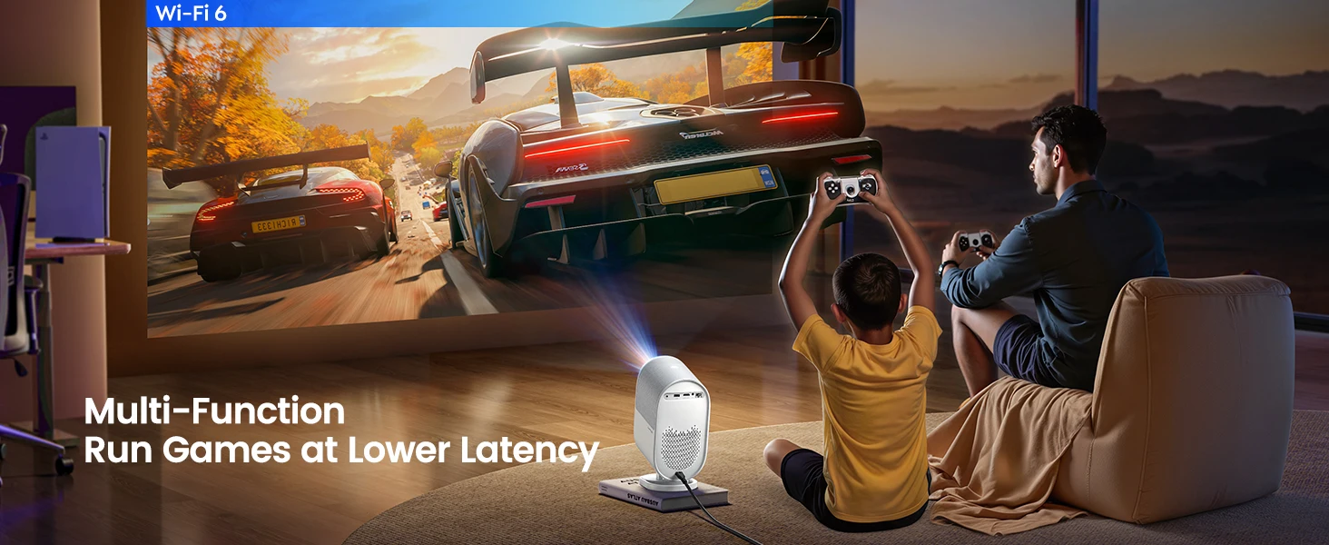 【AI Auto Focus & Keystone Correction, 50% Zoom】The 4k wifi bluetooth projector features AI Auto Focus/Keystone technology, and a built-in shift sensor ensures automatic correction, and also has Smart Obstacle Avoidance, Smart Screen Alignment。The WOS 2.0 system enhances focus speed by 50% compared to similar models, providing crisp, clear images in seconds, achieving perfect image quality in any scene. The 50%-100% zoom function allows you to adjust the image size without moving the projector to meet your multi-scene entertainment needs.