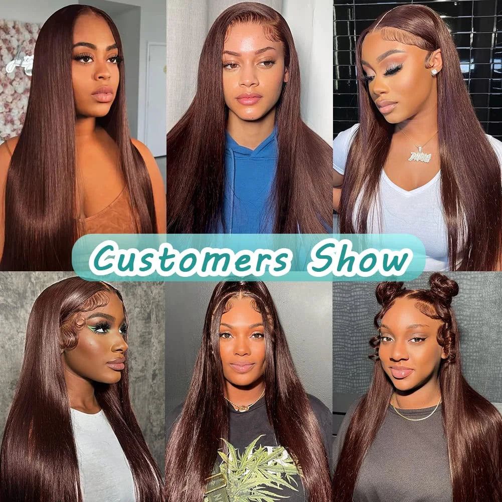 Products name: Chocolate Color Bone Straight Human Hair Lace Frontal Wigs