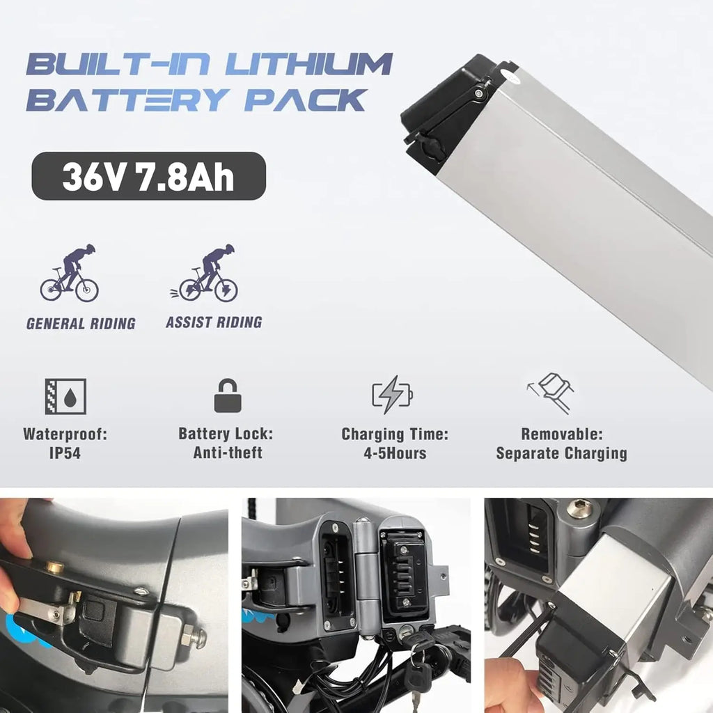 • Powerful engine, super long distance-engine 250W 36V-speed