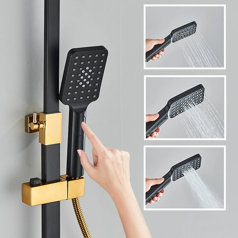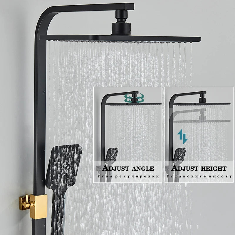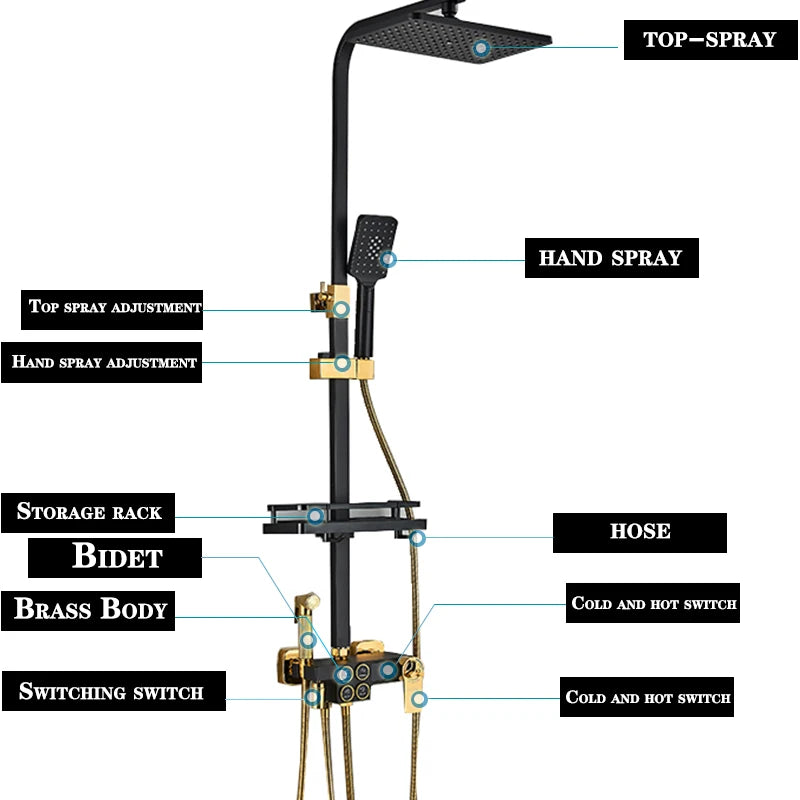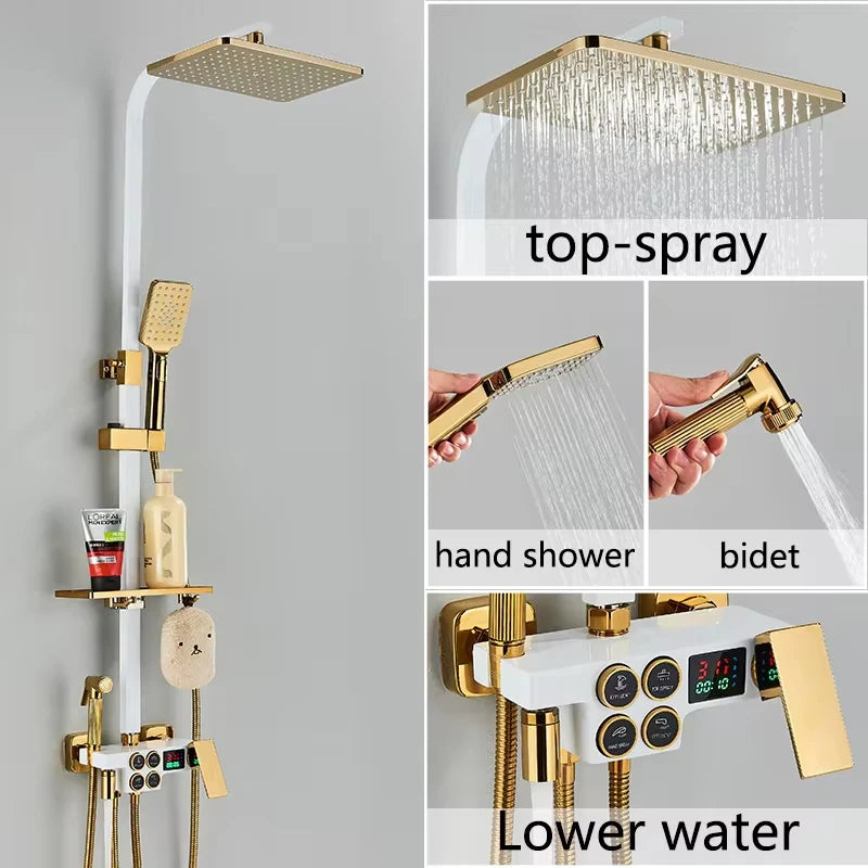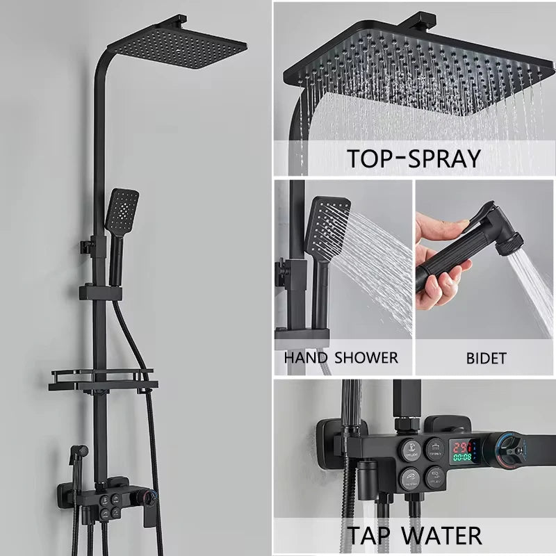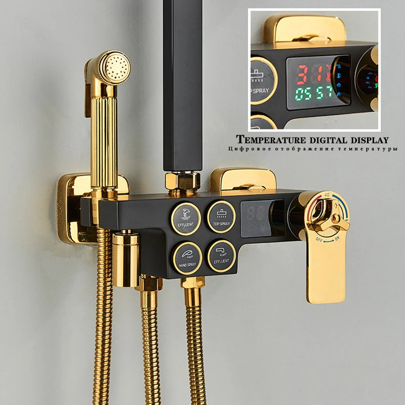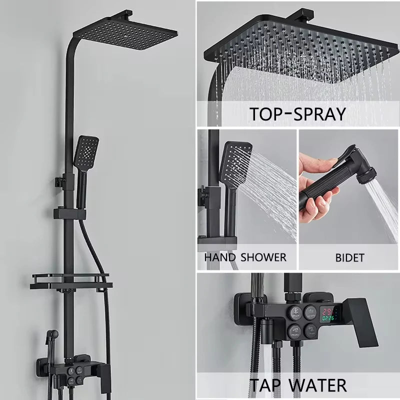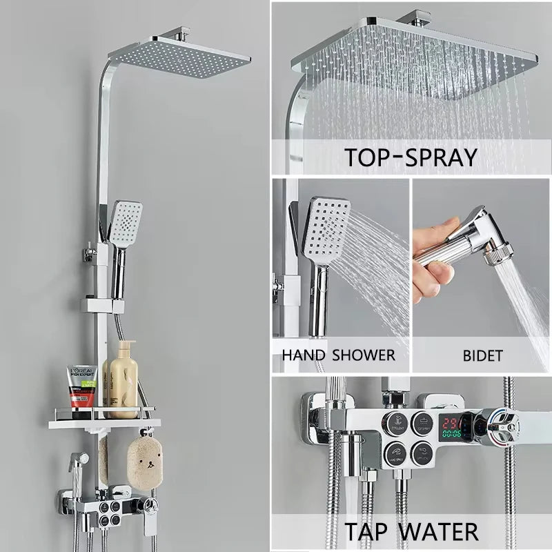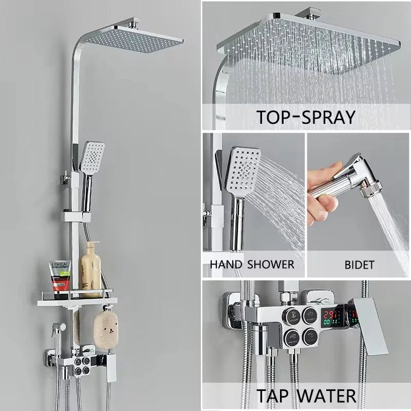 4-Function Button Digital Display Shower Faucet Set Chrome Rain Shower Column Constant Temperature Shower Wall Mounted