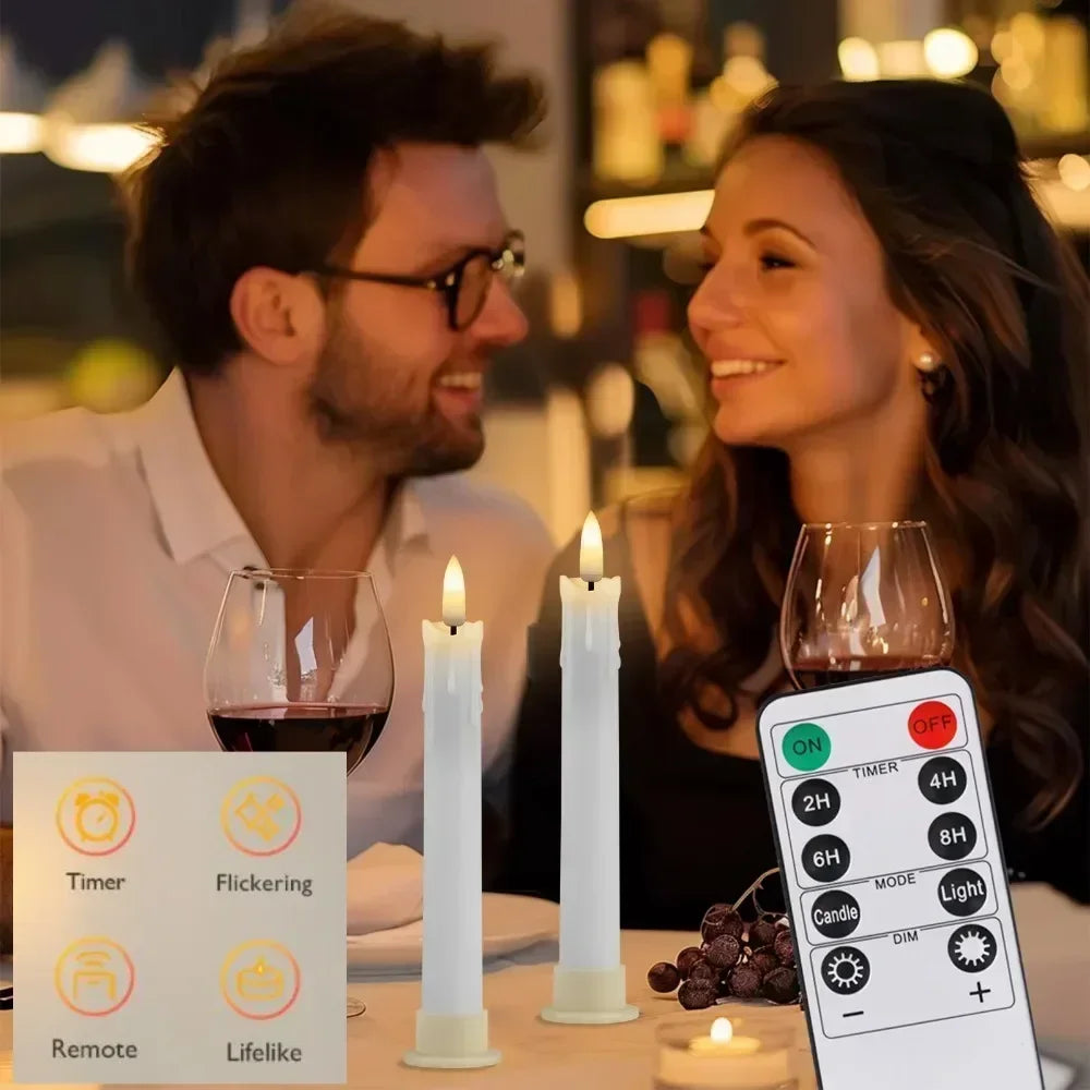 6/12Pc 6.6inch LED Flameless Taper Candles with Remote Flickering CandleSticks Plastic Window Candles for Halloween Christmas