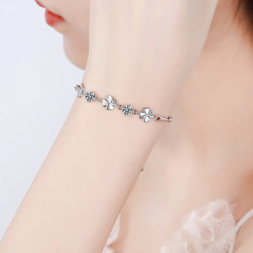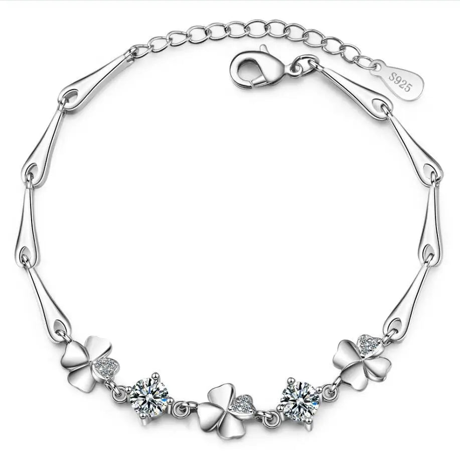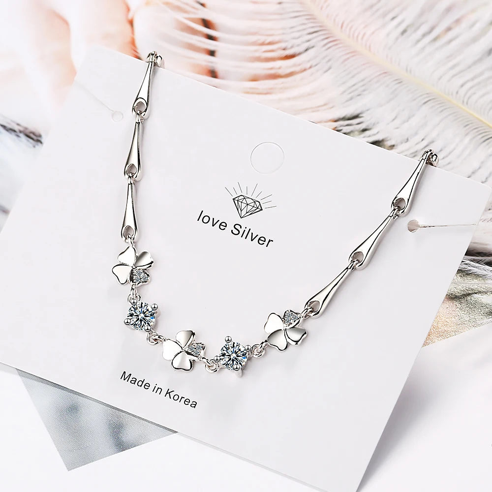 925 Sterling Silver Bracelet For Women Lucky Cute Sweet Student Female Four-leaf Clover Bracelets Girlfriend Valentines Day Gift