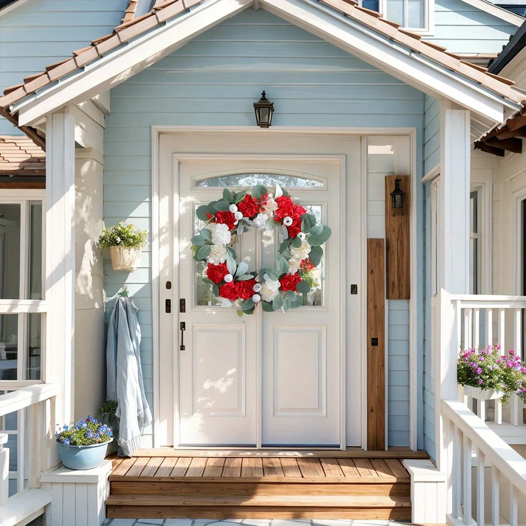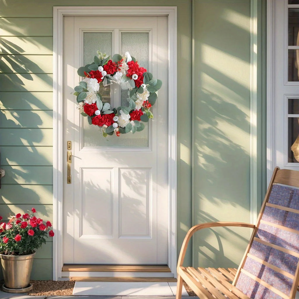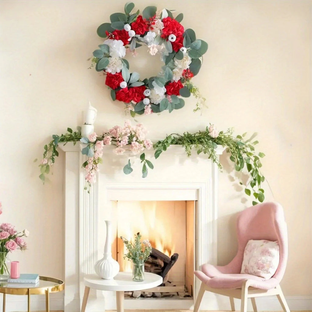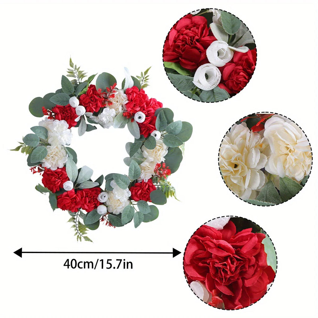 Artificial Red White Flowers Wreath 15.7in Door Hanging Holiday Simulation Flowers Withered Branches Wreaths Hotel