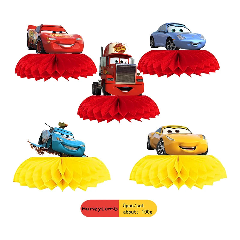 Cars Party Decoration Latex Balloon Happy Birthday Sticker Spieal Baby Shower Cupcaketopper Cake Flag Honeycomb Children