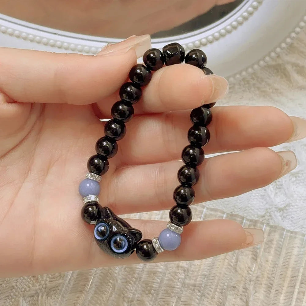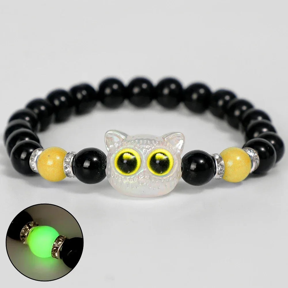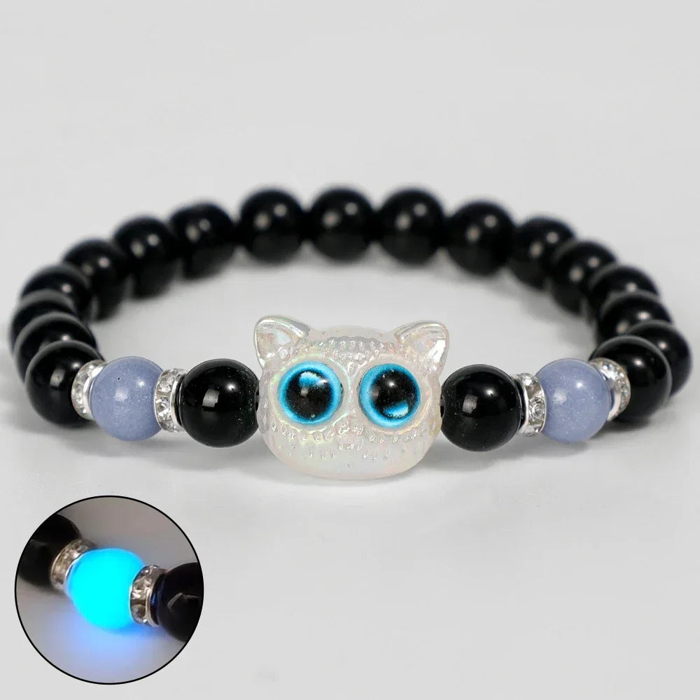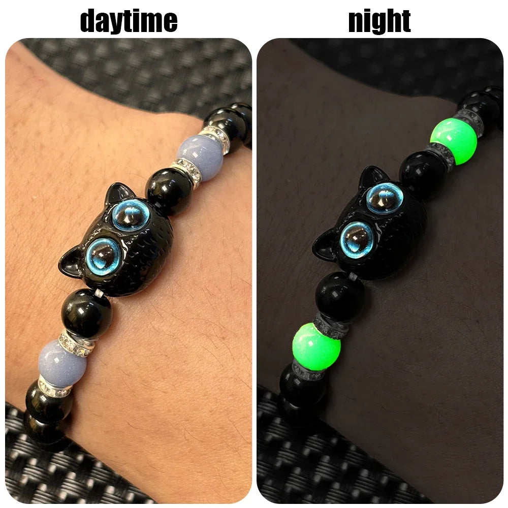 Creative Cute Big Eye Cat Luminous Bracelets For Women Animal Pendant Beaded Hand Chain Friendship Couple Bracelet Jewelry Gifts