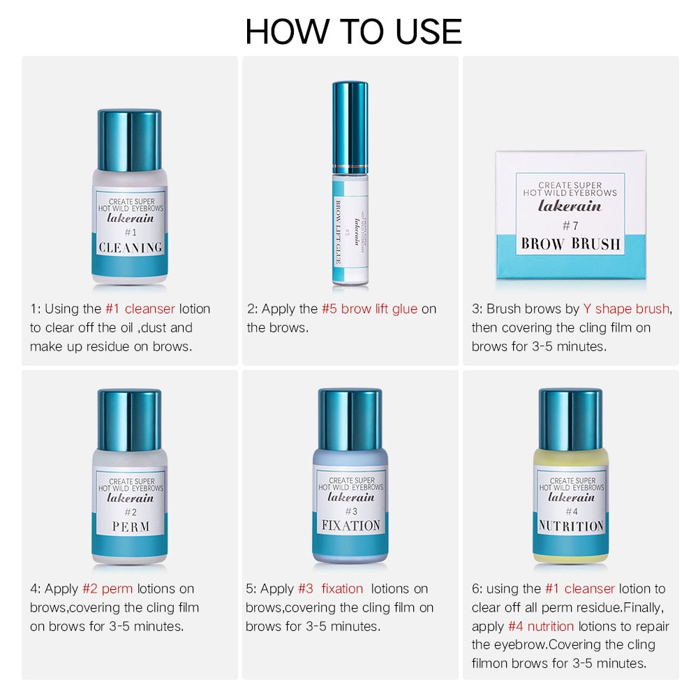 Paket enthalten: 1 x Frischhaltefolie 1 x Brauenliftbürste 1 x Reiniger 1 x Dauerwellenlotion 1 x Fixierlotion 1 x Ernährungslotion 1 x Brauenlift-Kleber Wie benutzt man: 1: Verwenden Sie die Reinigungslotion Nr. 1, um die Augenbrauen zu reinigen 2: Tragen Sie #5 Brow Lift Kleber auf die Brauen auf 3: Bürsten Sie die Brauen mit einer Y-förmigen Bürste und bedecken Sie sie dann mit der Frischhaltefolie 4: #2 Dauerwellenlotion auftragen und ca. 3-5 Minuten mit der Frischhaltefolie abdecken 5: Fixierlotion Nr. 3 auftragen und ca. 3-5 Minuten mit der Frischhaltefolie abdecken 6: Verwenden Sie das Reinigungsmittel Nr. 1, um alle Rückstände der Dauerwelle zu entfernen 7: Verwenden Sie zum Schluss die Ernährung Nr. 4, um die Augenbraue zu reparieren, und bedecken Sie sie etwa 3-5 Minuten lang mit Frischhaltefolie