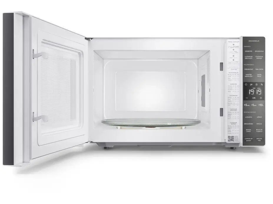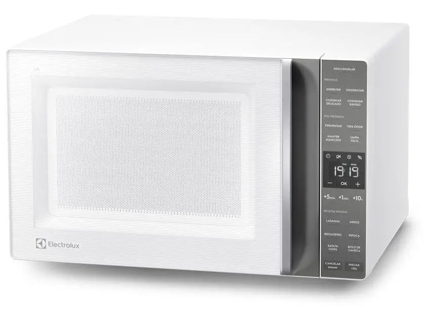 The microwave is a great ally to prepare food in a practical and fast way. You can even prepare some recipes directly in the microwave like mug cake, rice, popcorn, lasagna and even risotto! The ME36B model, Electrolux's Efficient line although compact on the outside, offers a wide internal capacity of 36L. It is ideal for receiving different sizes of sleepers. With it, you optimize the space of your kitchen without losing capacity. Its smart panel, with automatic power adjustments, provides five different and functional preparation modes to make your routine more practical: ferment; melt; dehydrate; cook fast and cook delicate. The Ferment Function helps speed up the fermentation process in pasta. Try it for breads and pizzas, for example. Melt chocolate and butter easily and at the right point with the Melt Function. Activate the Dehydrate function to make fruit or vegetable chips, as well as dehydrate herbs to keep them longer. Select the Delicate Cooking Function if you want to prepare soft foods such as fish and some types of vegetables. For harder vegetables and beef, use the Gentle Cooking Function. The Electrolux Microwave has the Keep Warm function, which keeps your freshly prepared recipes warm and delicious until consumption. The Odor Strip function is ideal to keep your product free of possible odors from previous preparations thanks to the internal air recirculation system. Its design in White and Gray color will leave your kitchen modern and practical as you need!