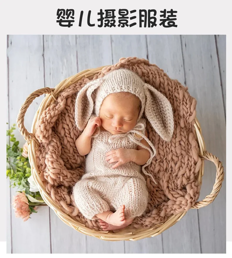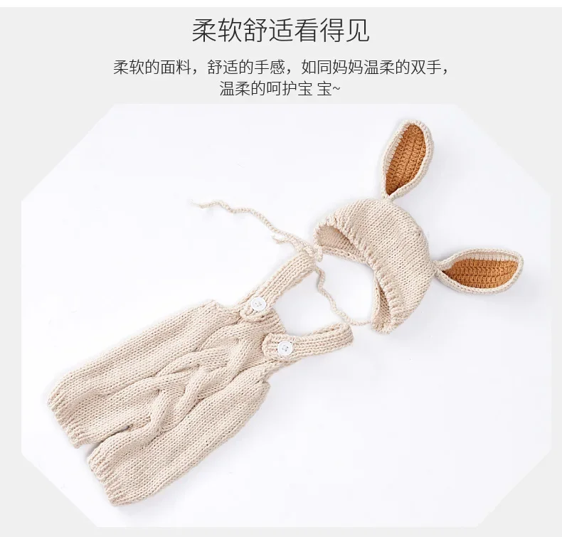 Newborn Rabbit Costume Photography Props Accessories Baby Easter Bunny Outfit 0-6 Months Knitted Clothes Female Boys Jumpsuit