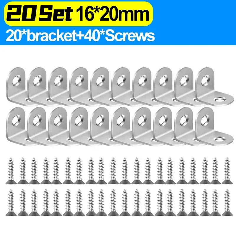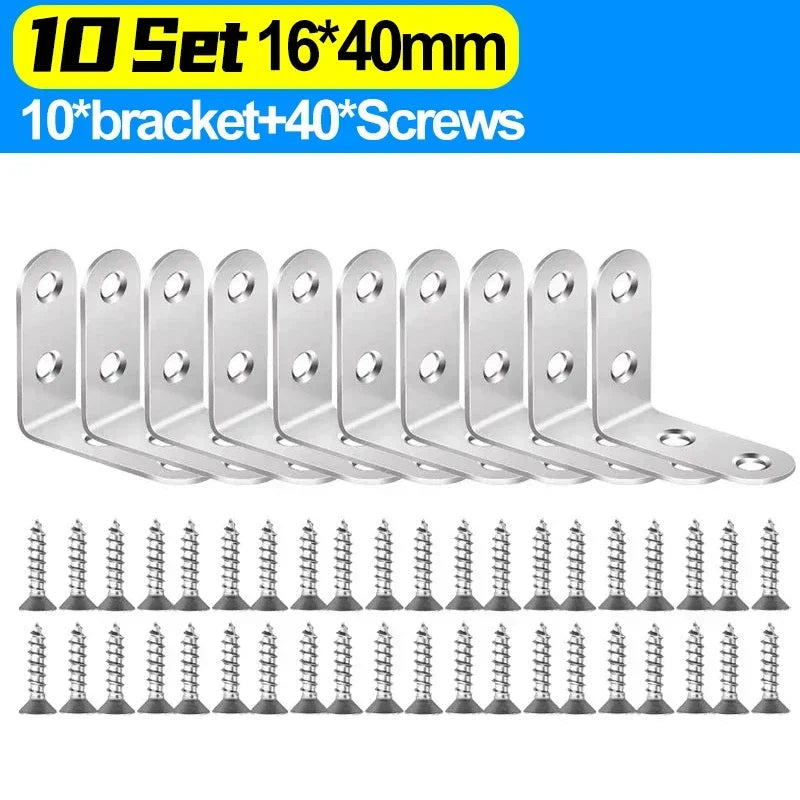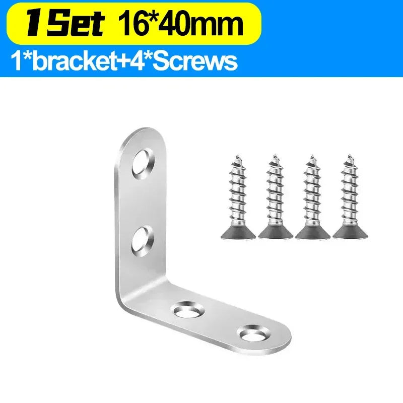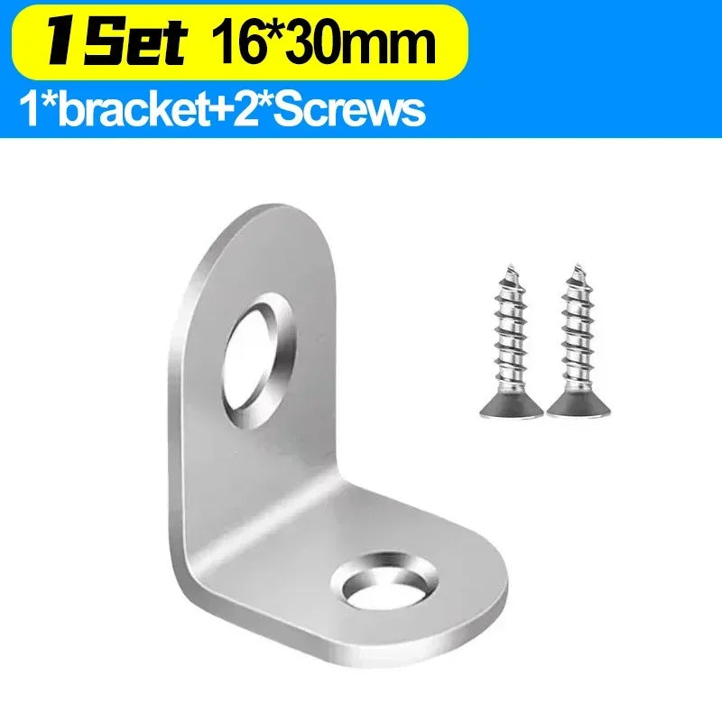 Stainless Steel Corner Bracket L Right Angle Connector Brackets Furniture Cabinet Fastener Corner Brace Shelf Support with Screw