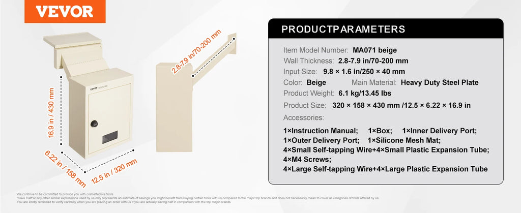 Simple Installation: Our mailbox has adjustable sliders for different wall thicknesses and is easy to install with detailed instructions, even for beginners.