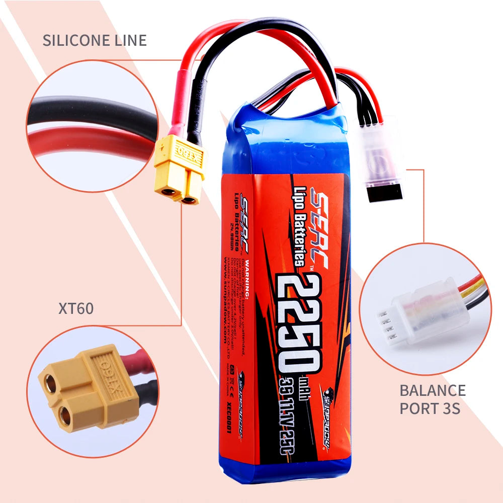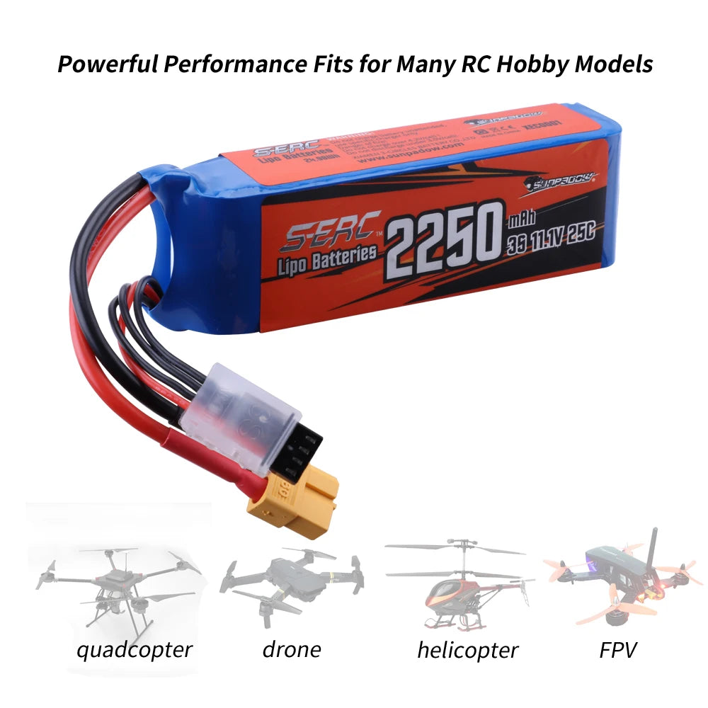 2packs Sunpadow 3S 11.1V Lipo Battery 2250mAh with XT60 Plug for RC Airplane Quadcopter Helicopter Racing Hobby
