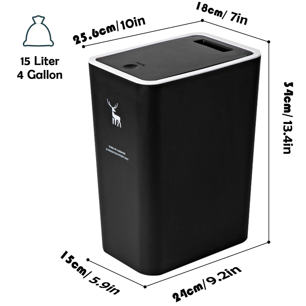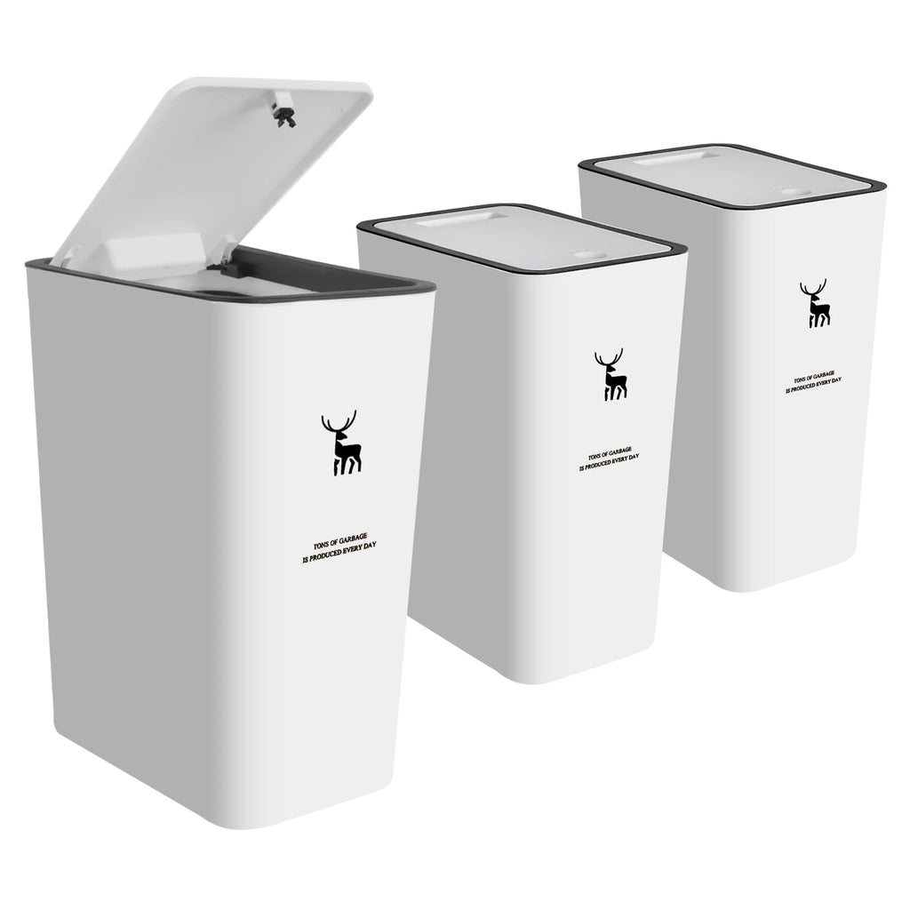Trash Can with Lid, 3 Pack 4 Gallons/15 Liters Garbage Can with Press Top, Small Trash Can Dog Proof, Plastic Trash Bin, Waste