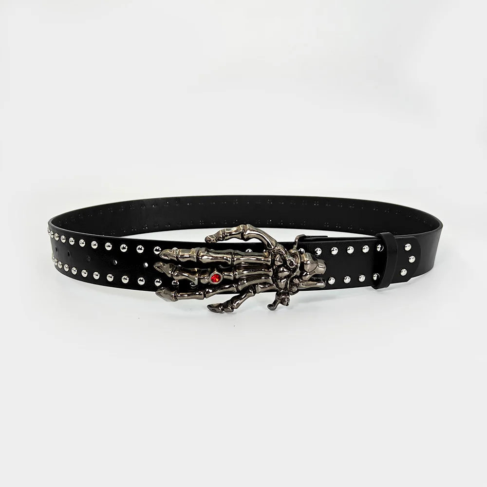 Unisex Jeans Belt Gothic Punk Y2k Designer Belts For Women Plus Size Skull Hand Heart Rivet Black Men's Belt Male Dark series