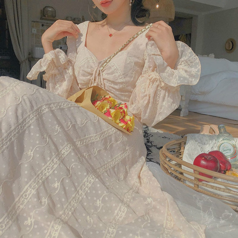Vintage Fairy Dress Damen Elegant Designer Chiffon Kleid Langarm Französisch Party Midikleid Lässige Damenbekleidung Herbst 2022