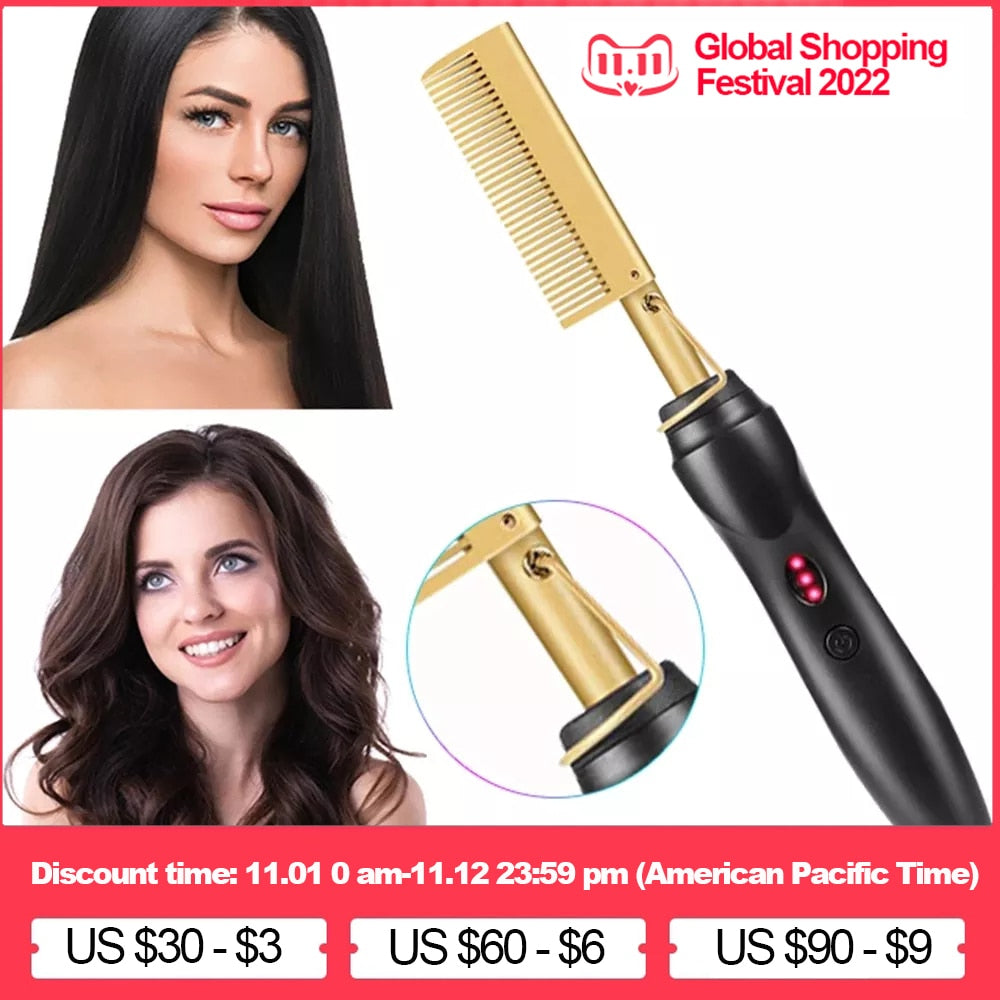 Heizkamm-Glätteisen : Heißer Heizkamm für schwarzes Haar